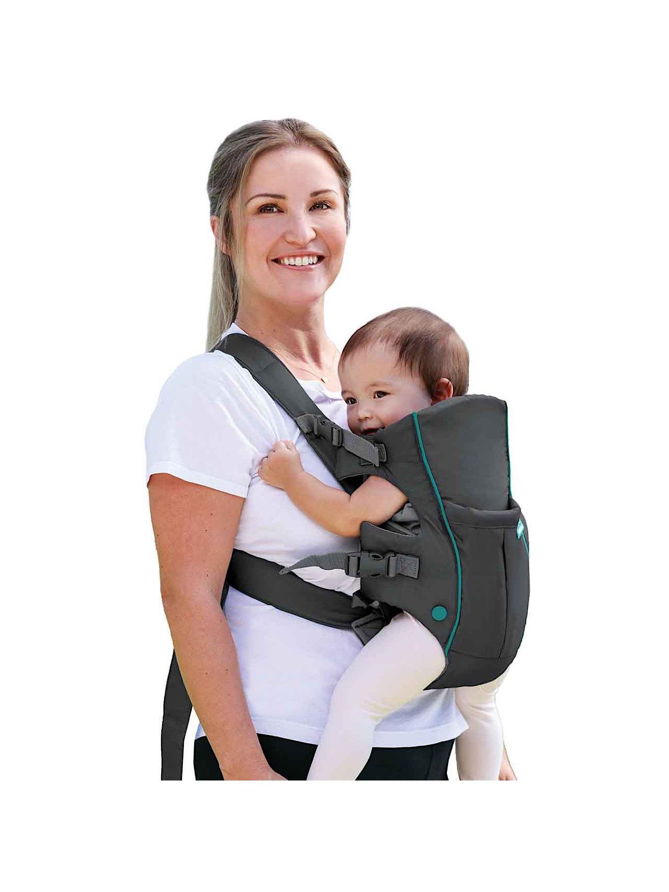 Infantino Swift Classic with Bib Carrier - GreyThe Swift carrier has a smart and simple design that's perfect for quick trips and on-the-go families.It's light and compact so it's easy to stash or pack in a bag. This plush pouch style carrier can be worn inward or outward facing. Plus, it includes our detachable Wonder Cover bib that protects the carrier and clothing from drool, while adding a fun element of style. A handy front pocket makes it easy and convenient to keep baby and parent essentials nearby, handsfree.