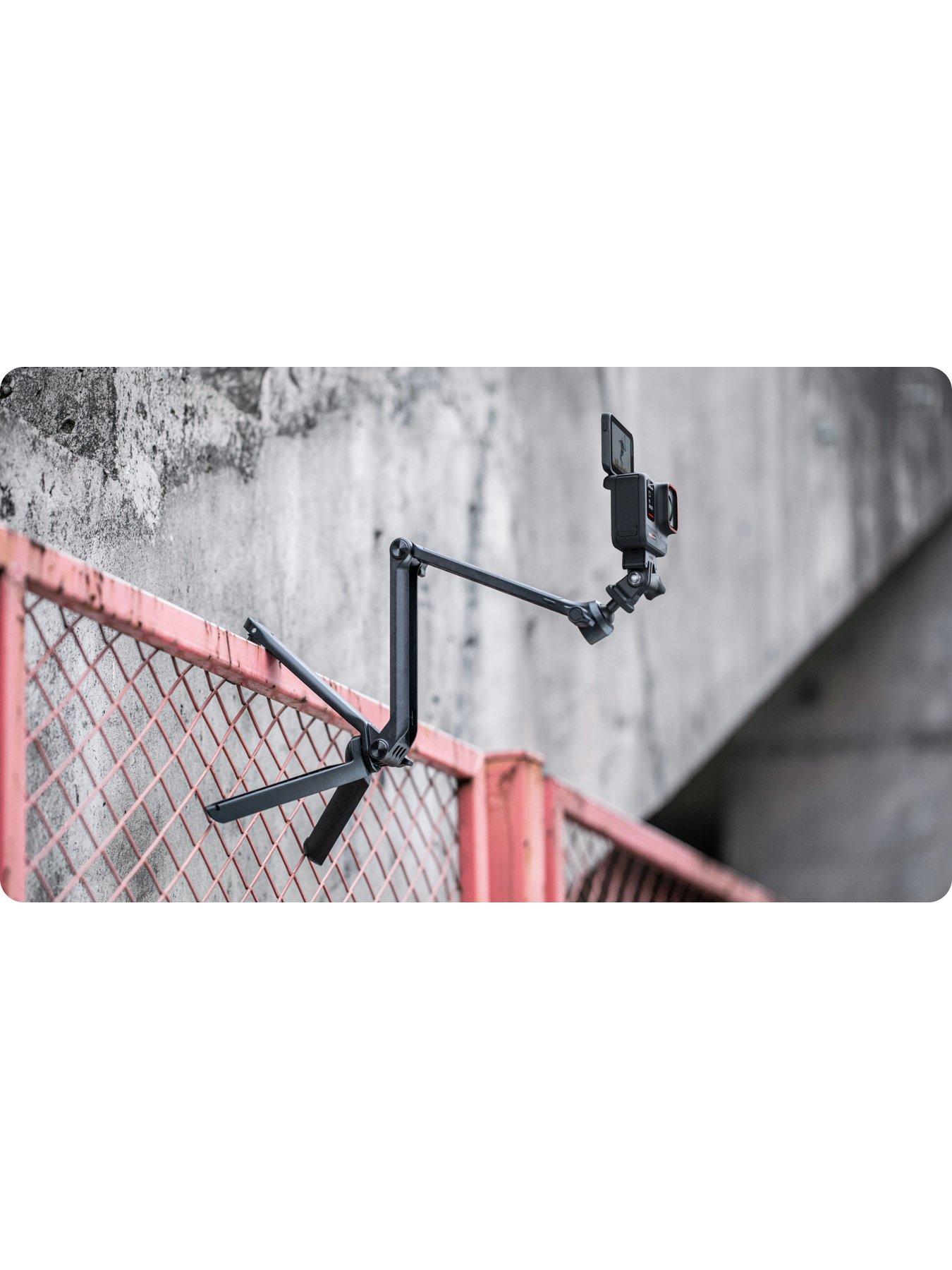 Insta360 Vlog Multi Mount (Ace Pro, Ace, GO3, Link, ONE RS-1inch)The Insta360 3-in-1 Multi Mount provides the capabilities of a selfie stick, a tripod, and a magic arm all in one device. A built-in 360° ball head with a 1/4"-20 screw allows you to attach your action camera and adjust it for optimal recording angle. An included 3-prong to 1/4"-20 screw mount adapter expands compatibility with other camera