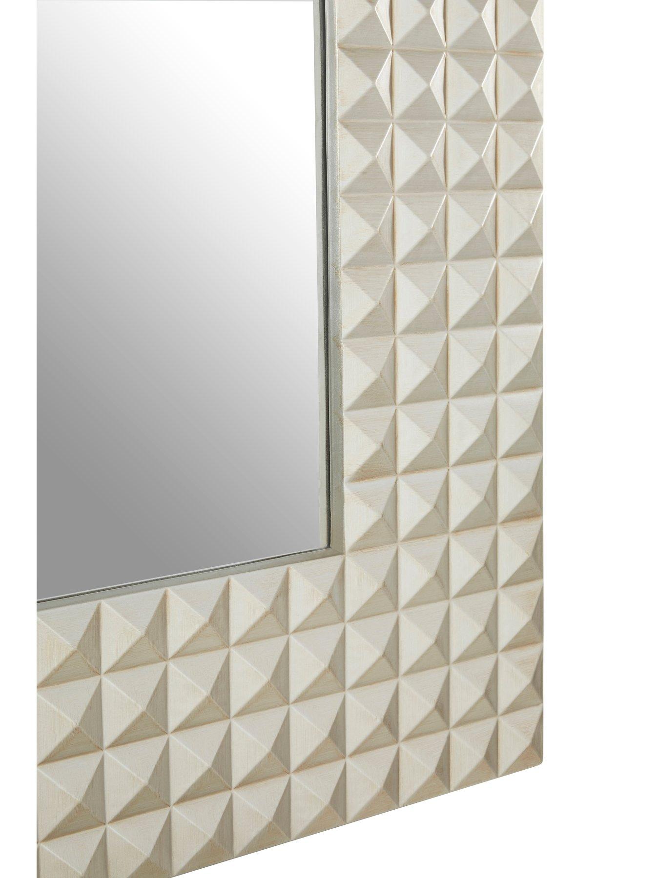 Interiors By Premier Dimano Champagne Finish 3d Geometric Wall MirrorThe mirror is set into a thick frame and is comprised of a number of square segments. Each segment features four triangles that slightly elevate to meet in the centre to create a 3D effect. The resulting geometric effect makes this a contemporary statemen