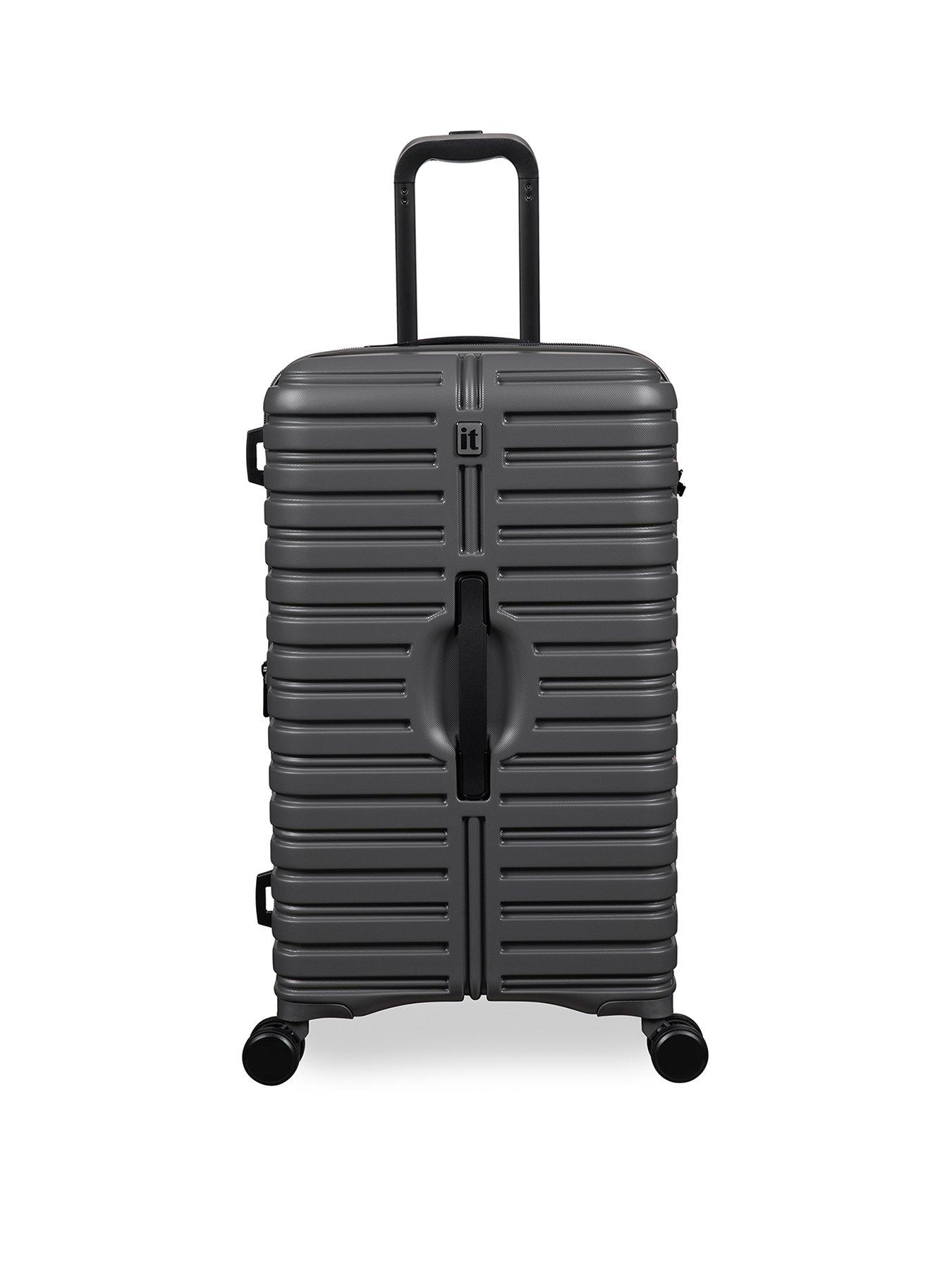 it Luggage Jumbo Charcoal Medium SuitcaseDon't worry about space with the Jumbo collection by IT Luggage. Never worry about whether you can fit in an extra pair of shoes with this deep panelled suitcase perfect for fitting in bulky shaped items. With an extra carry handle on the front panel, it has never been easier to grab and manoeuvre your suitcase. With an 8-wheel spinner system you will be able to easily control your suitcase on your next adventure. If the Jumbo collection didn't offer enough room to begin with then the single expander will give you that extra bit of space. Bring more with you on your next adventure.Medium External Dimensions: 71 x 42.5 x 33cm + 7.6cm Exp Medium Internal Dimensions: 63.5 x 39 x 33cm + 7.6cm Exp Medium Weight: 4.37kg Medium Capacity: 100L 10 Year Warranty