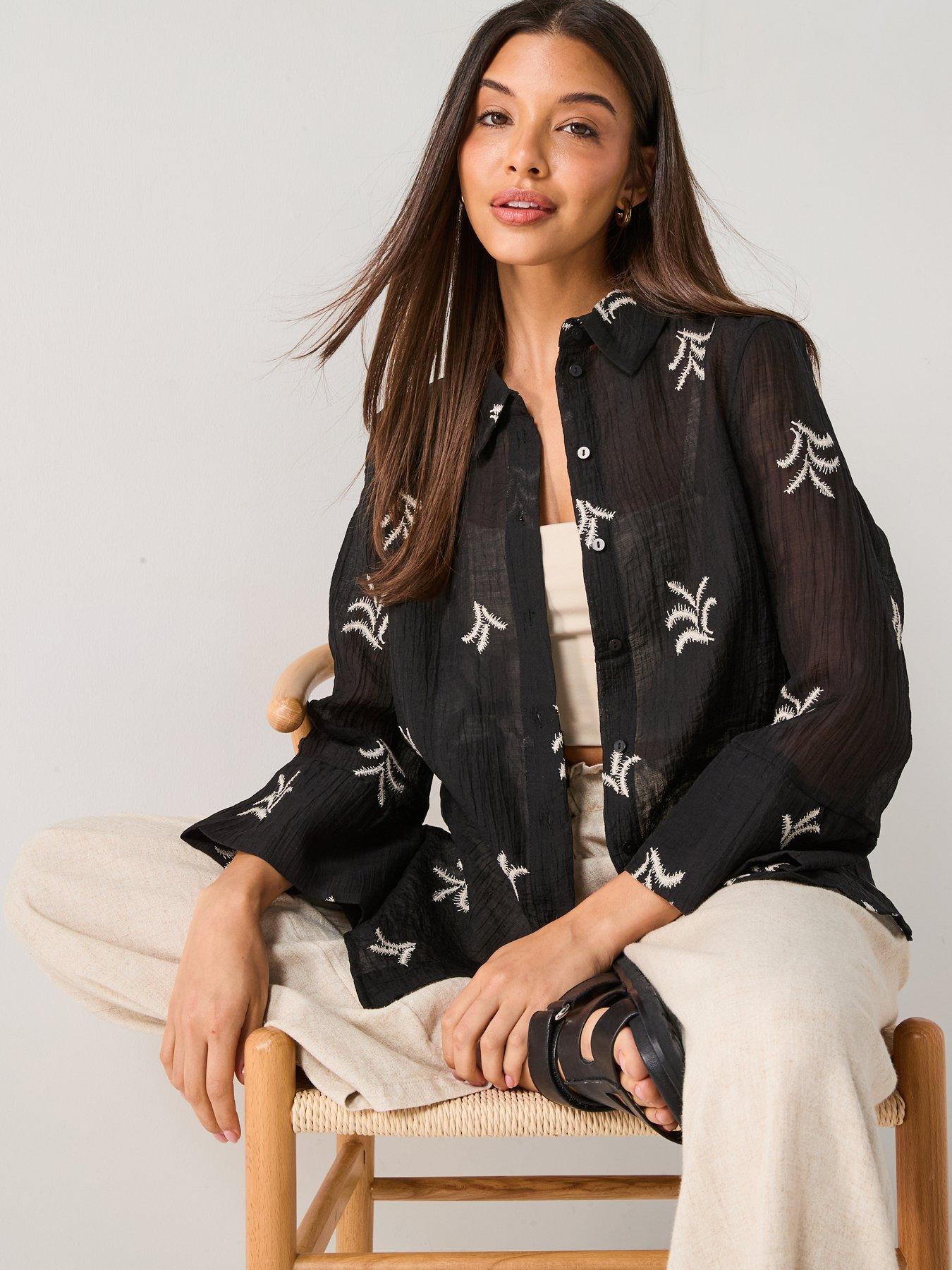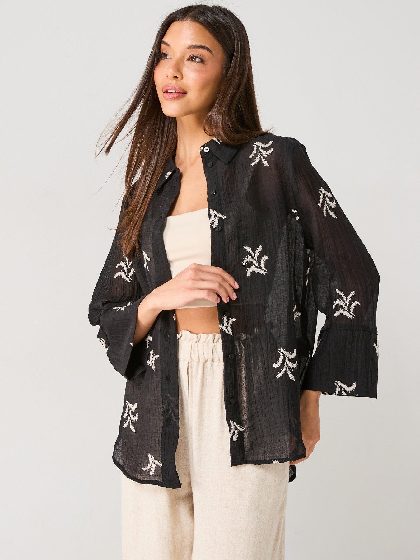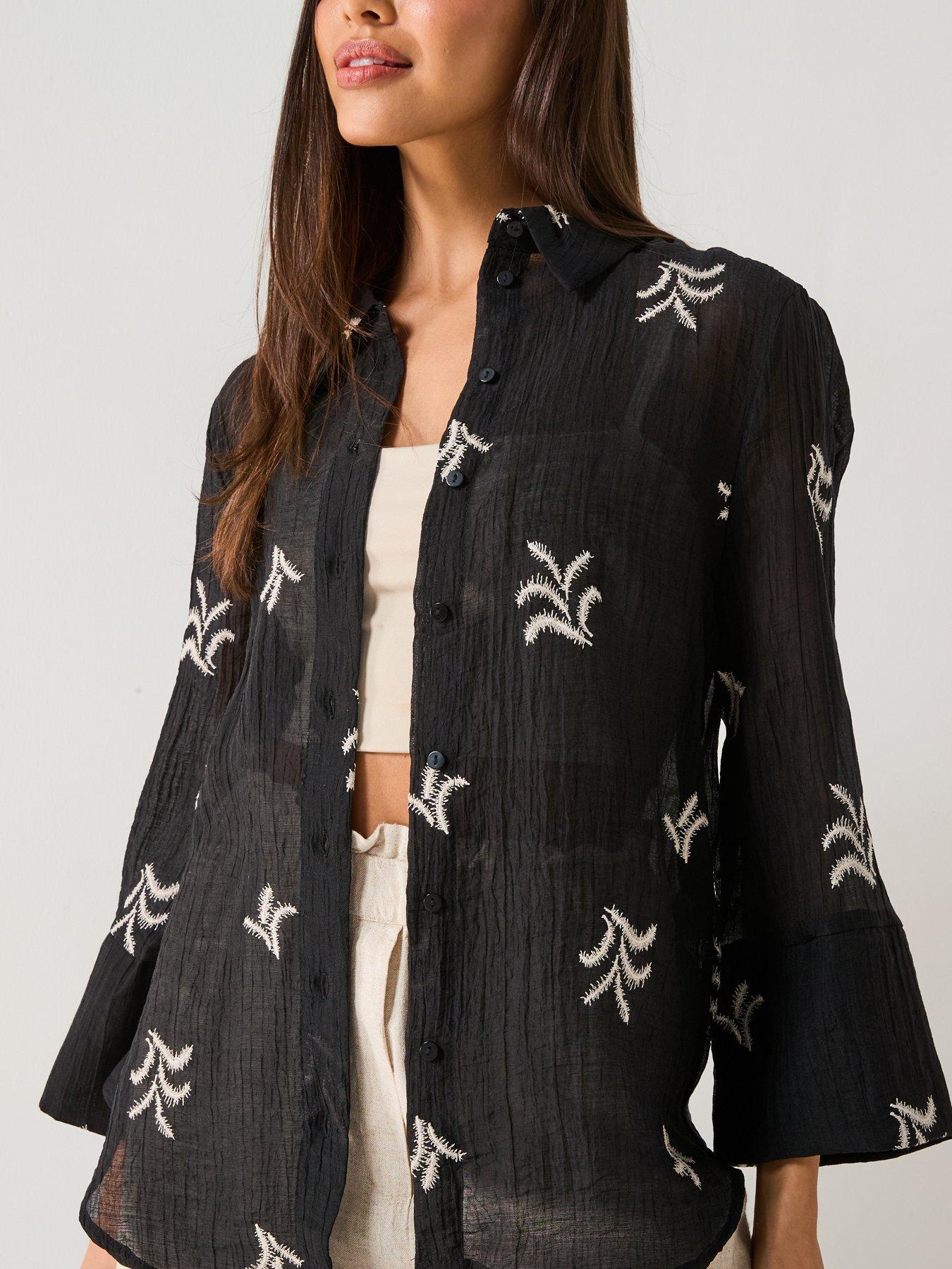 JDY Semi Sheer Embroidered Shirt