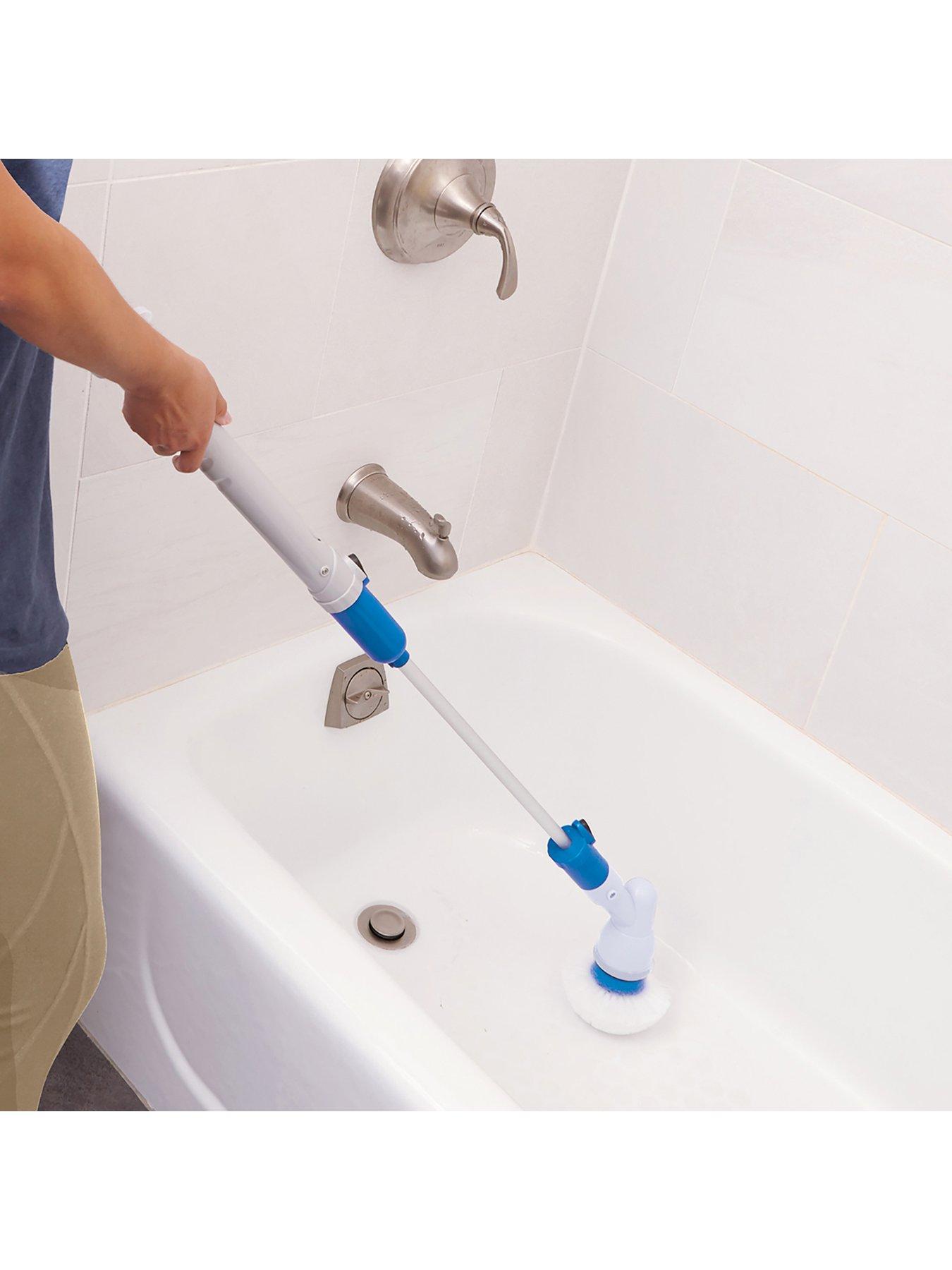 Hurricane Spin Scrubber will blast through every last bit of dirt, grime, soap scum, lime scale, calcium and hard water stains like a whirlwind! With three interchangeable heads, spinning at an incredible 300rpm, and an extension pole that means you can reach every corner of your bathroom without bending or stretching.