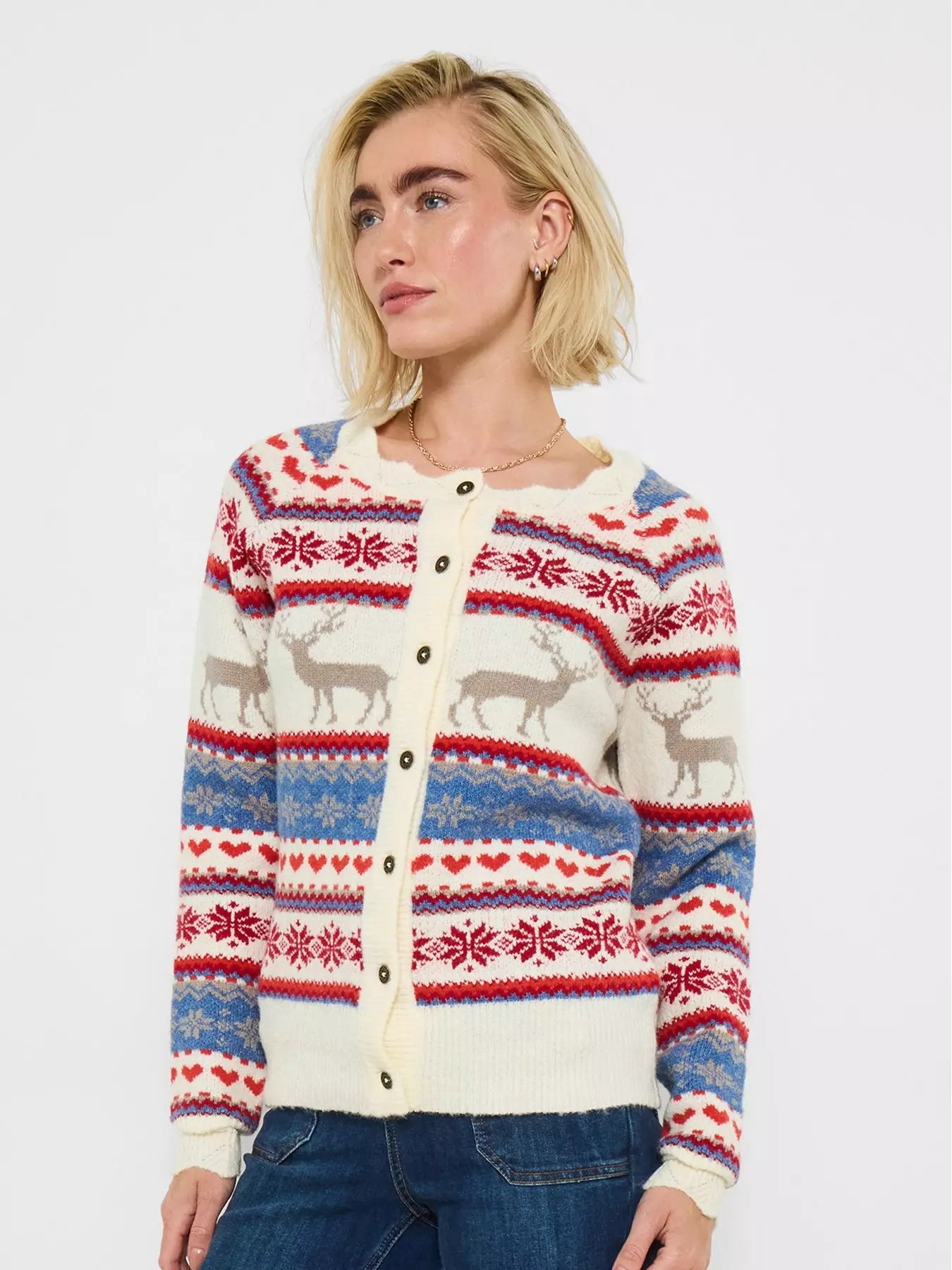 Perfectly snug and seasonal, this Fairisle cardigan is a must for your winter wardrobe.- Material Content: 48% Polyester, 38% Acrylic, 12% Polyamide, 2% Elastane