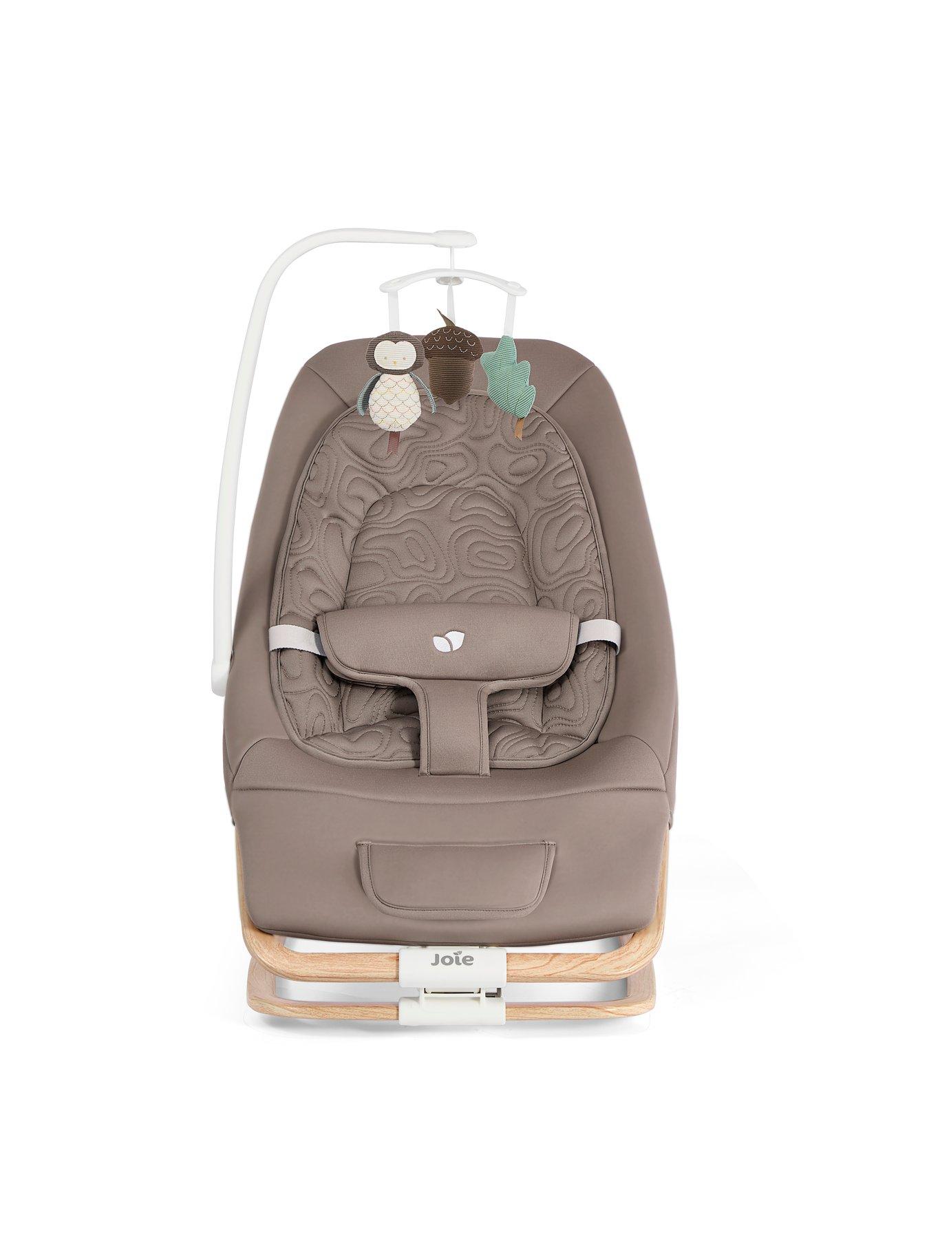 Joie Dreamer Rocker - Strata Acorn WoodMeet dreamer, a cosy cradler comforts baby from newborn on. Compact frame and handy extras make for a soothing solution at home or on-the-go.Ready to rock - 3 position reclining seat rocks or bounces with a simple push or when baby moves. Ready to roll - Lightweight design and fully flat compact fold make pack-up for travel a breeze. Ready to rest - 5 classical lullabies and 5 nature sounds pair with vibration and toys to sooth little ones.