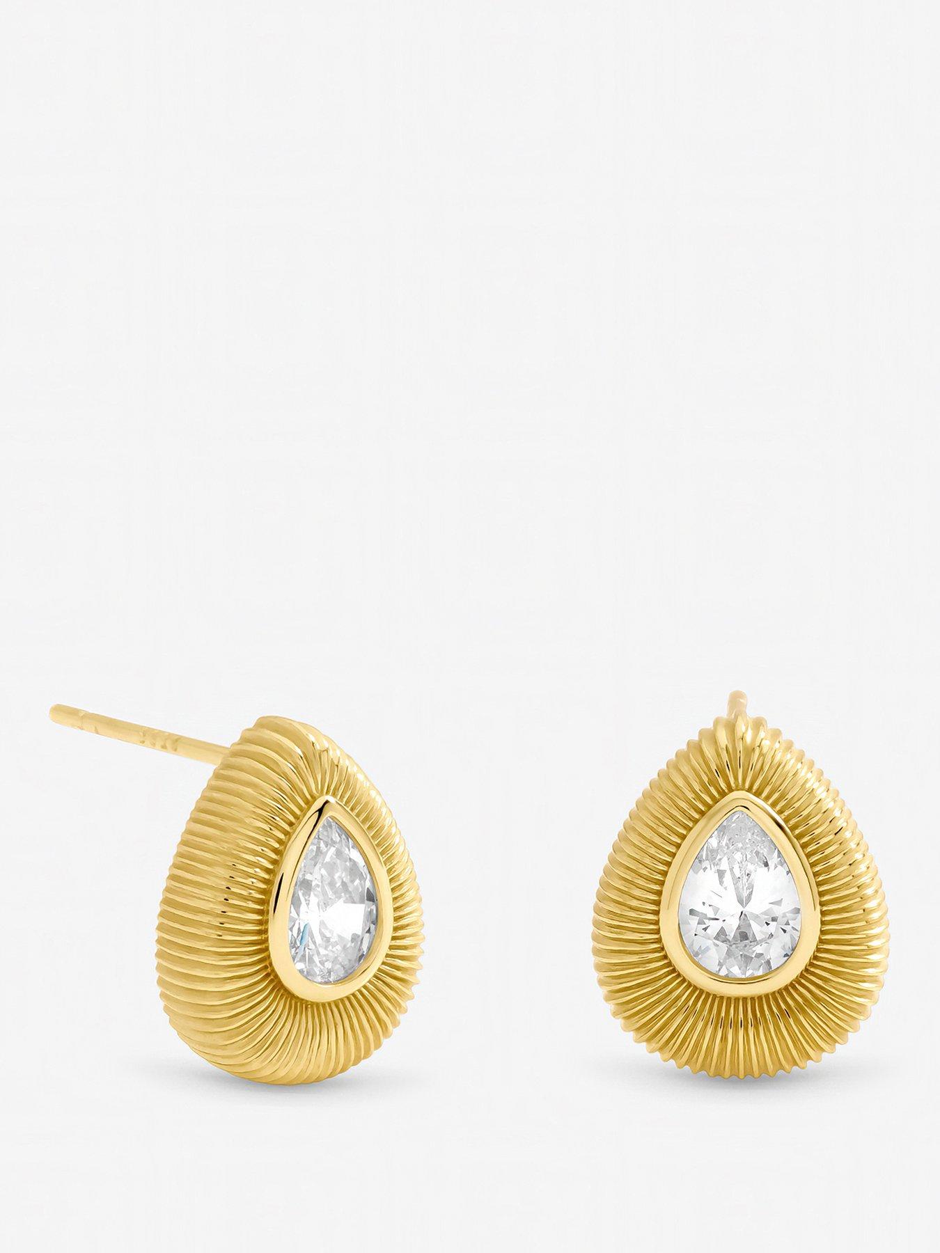 Jon Richard Jon Richard Gold Plated and Crystal Tear Drop Stud EarringsOur Jon Richard Gold Plated and Crystal Tear Drop Stud Earrings are a must have, featuring a delicate teardrop silhouette accented with sparkling crystals. Finished in radiant gold plating, these studs add refined elegance and subtle brilliance to both everyday looks and special occasions. Fastening: Hoop. Width dimension: 12mm, length dimension: 10mm. Material: Gold plated base metal.