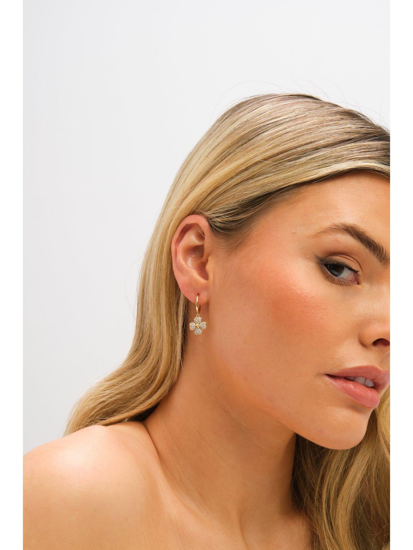 Jon Richard Jon Richard Gold Plated and Pave Clover Huggie EarringsOur Jon Richard Gold Plated and Pave Clover Huggie Earrings feature a polished gold plated huggie design accented with dazzling pave crystals in a delicate clover motif. Lightweight and refined, these earrings bring a touch of elegance to any look. Fastening: Hoop. Width dimension: 16mm, length dimension: 30mm. Material: Gold plated base metal.
