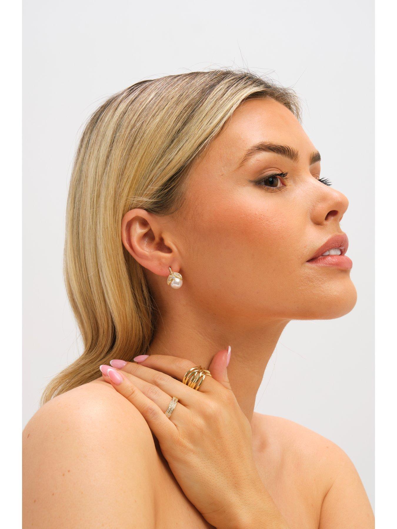 Jon Richard Jon Richard Gold Plated Crystal and Pearl Leaf Stud EarringsOur Jon Richard Gold Plated Crystal and Pearl Leaf Stud Earrings feature intricately designed leaf motifs adorned with shimmering crystals and a subtle pearl accent, all finished in polished gold plating. Perfect for adding refined, nature-inspired elegance to any outfit. Fastening: Post and bullet back. Width dimension: 8mm, length dimension: 14mm. Material: Gold plated base metal.