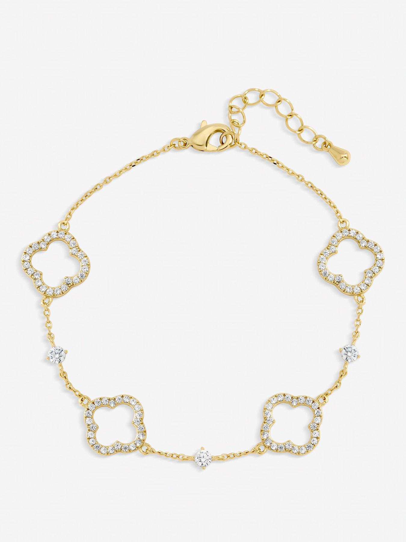 Jon Richard Jon Richard Gold Plated Pave and Crystal Open Clover BraceletThe Jon Richard Gold Plated Pave and Crystal Open Clover Bracelet is a sparkling and sophisticated addition to any jewellery collection. Featuring delicate open clover motifs adorned with pave crystals along polished gold plating, it catches the light beautifully from every angle. Perfect for both day and evening wear, this bracelet adds refined elegance and timeless glamour to the wrist. Fastening: Lobster clasp. Chain length: 7", extender length: 2". Width: 15mm, length: 15mm. Material: Gold plated base metal.