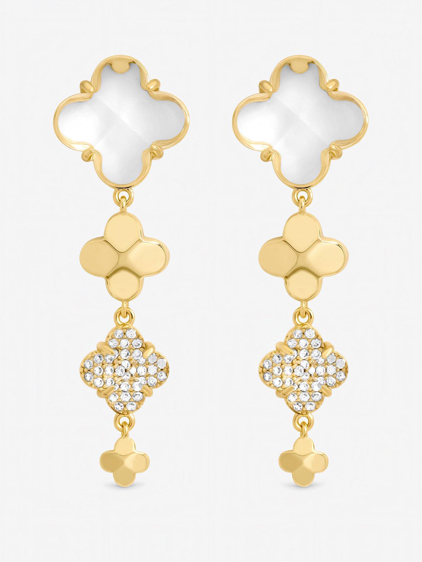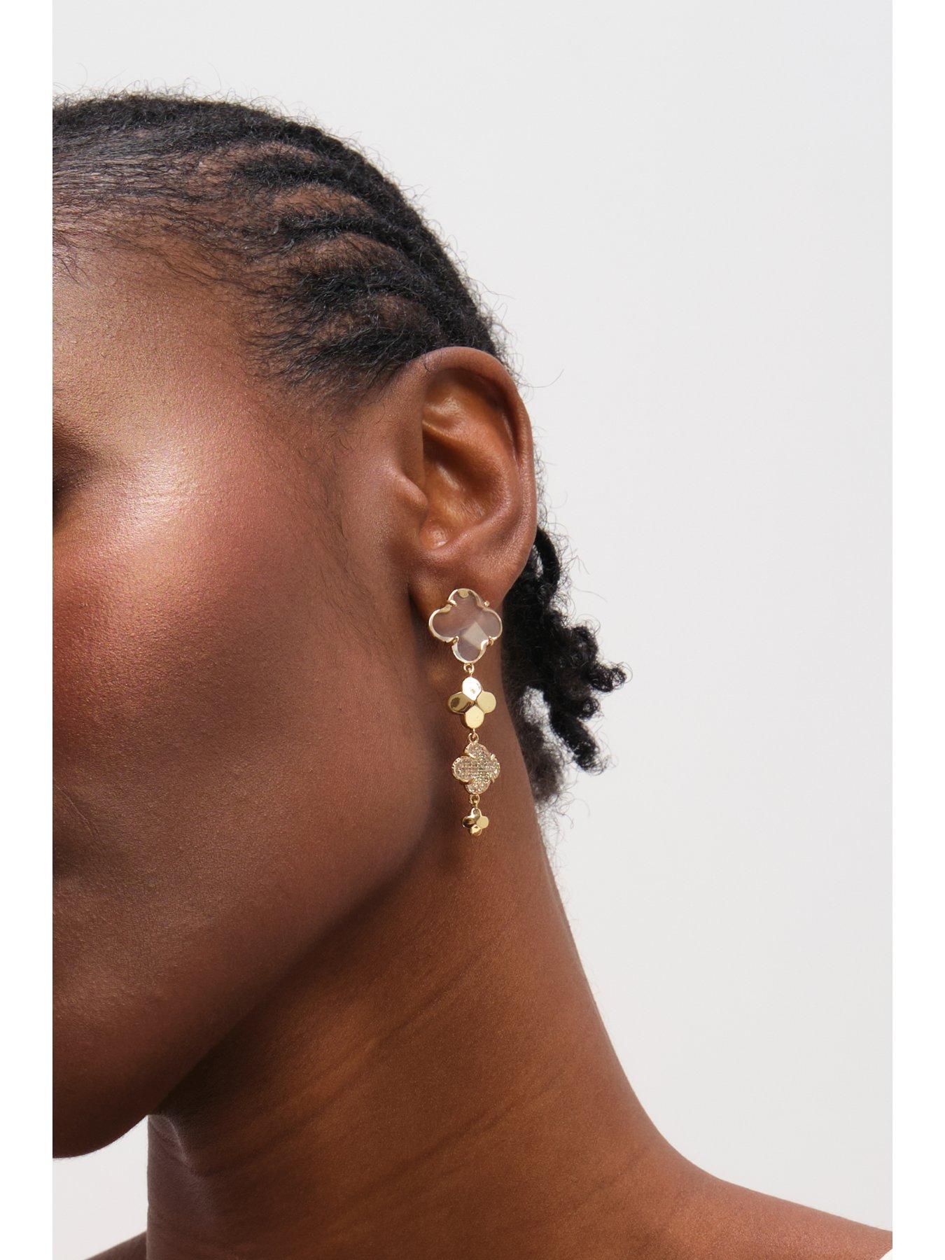 Jon Richard Jon Richard Gold Polished and Crystal Clover EarringsThe Jon Richard Gold Plated Polished Crystal Clover Earrings are a graceful and sophisticated addition to any jewellery collection. Featuring sparkling crystals set within polished gold clover motifs, they catch the light beautifully with every movement. Perfect for both day and evening wear, these earrings add refined elegance and timeless charm to any ensemble. Fastening: Post and bullet back. Width dimension: 20mm, length dimension: 35mm. Material: Gold plated base metal.