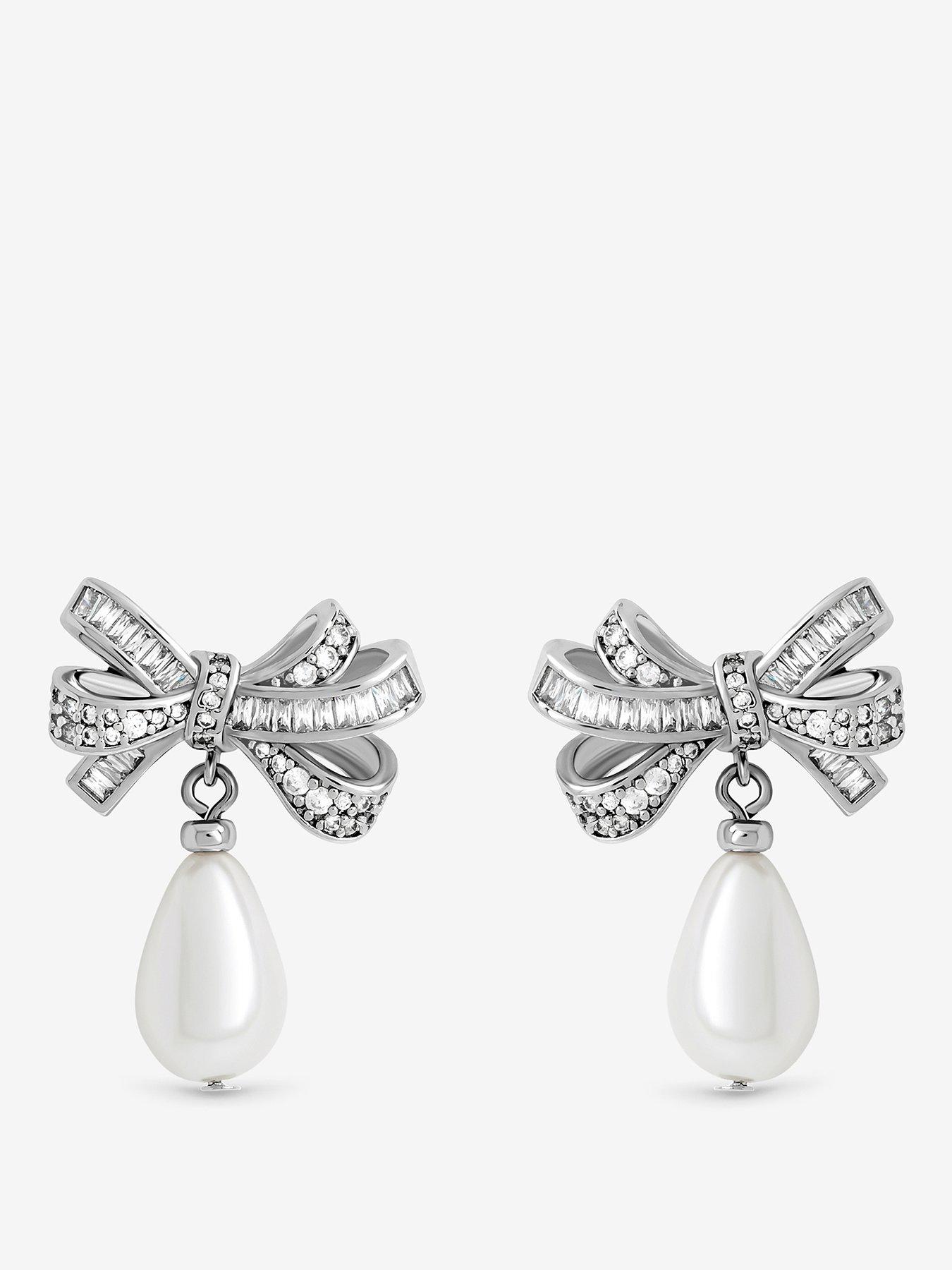 Jon Richard Rhodium Plated Cubic Zirconia Bow and Pearl EarringsOur Rhodium Plated Cubic Zirconia Bow and Pearl Earrings are expertly finished, designed to bring bold elegance to your everyday style. Featuring a striking CZ Crystal bow and shiny pearls, made to sparkle and finished in rich rhodium plating, this statement piece adds a touch of timeless sophistication. It is the perfect addition to any jewellery collection.