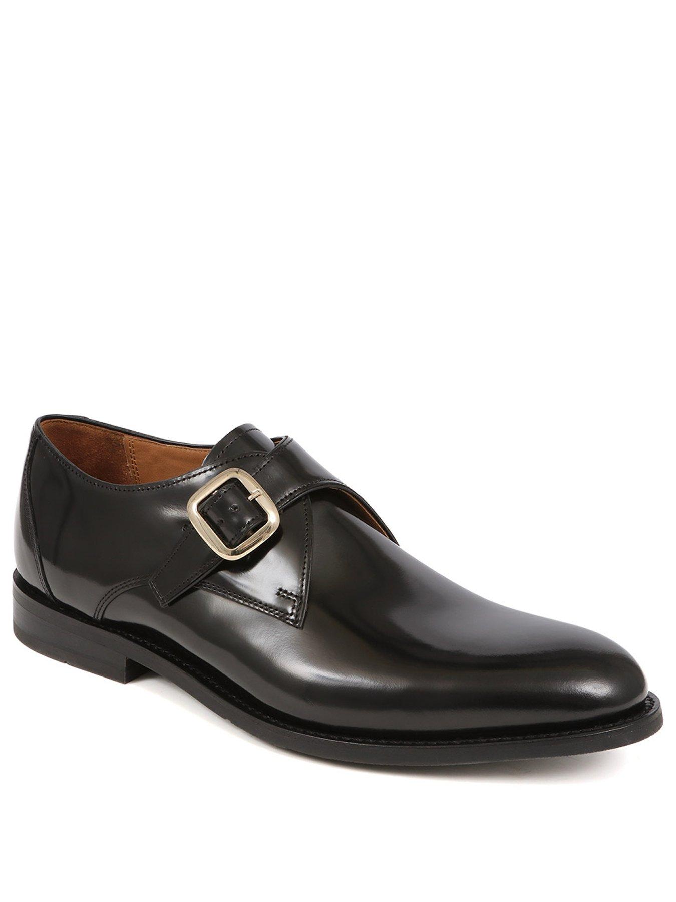 Jones Bootmaker Jones Bootmaker Aidan Monk Shoe - BlackStride into sophistication with these polished leather monk strap shoes, featuring a durable Goodyear welted sole for unrivaled longevity. The sleek buckle and precise stitching marry classic style with modern craftsmanship