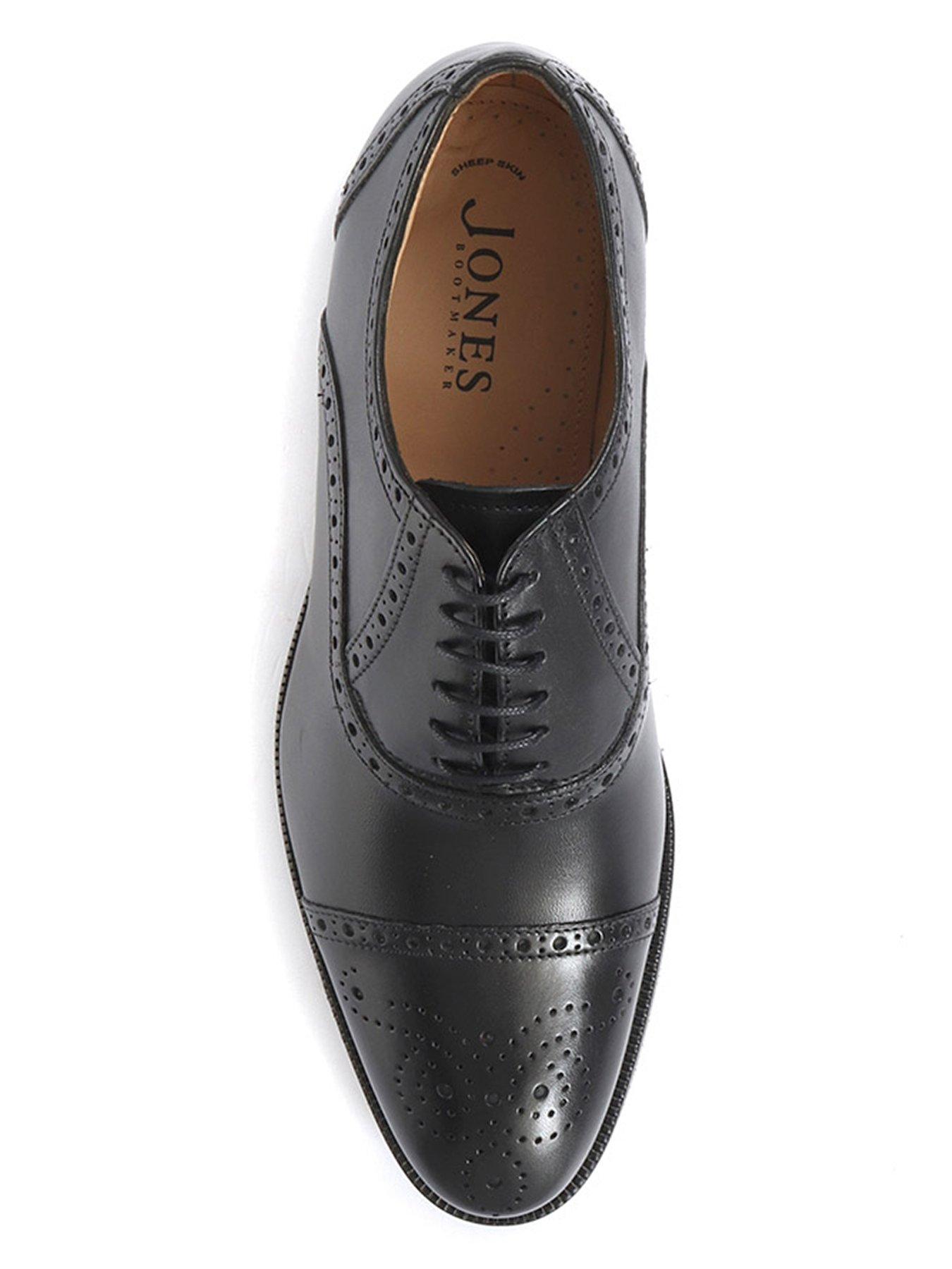 Jones Bootmaker Jones Bootmaker Maynard Lace Up Shoes - BlackNever underestimate the impact of power dressing, a classic leather formal punctuated with brogue detailing across the Oxford silhouette. Created with smooth polished leathers with traditional toe cap and almond toe, padded sock and tongue adds comfort to your formal edits.