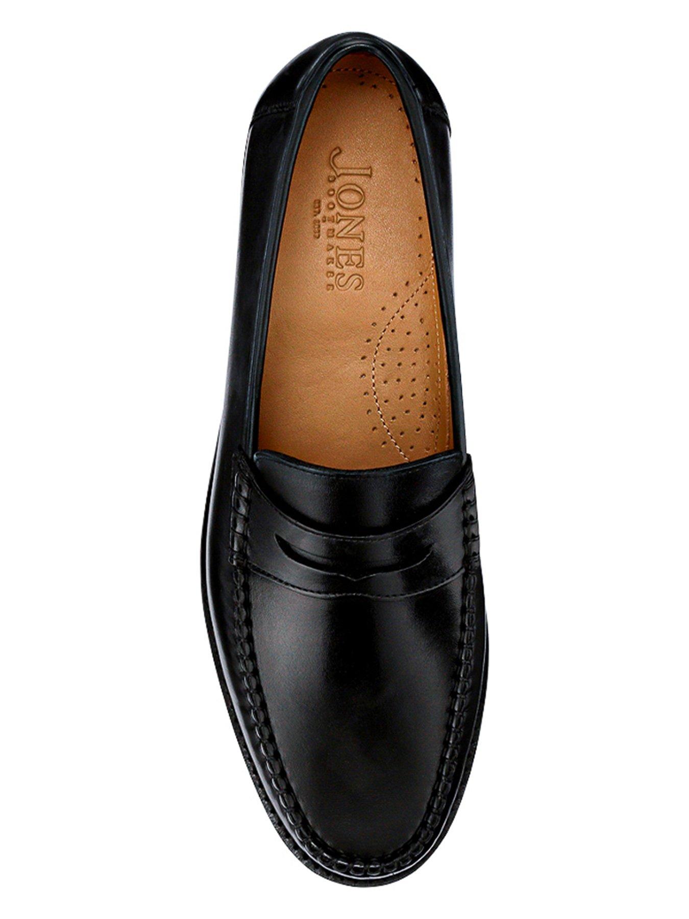 Jones Bootmaker Jones Bootmaker Quennell Formal Loafer - BlackExperience timeless sophistication with the Quennell leather Penny loafers. Crafted from a refined leather upper and insole, these loafers combine durability with exceptional comfort. The classic penny loafer design effortlessly complements both smart and casual outfits, making them a versatile addition to your wardrobe. Featuring a subtle heel and an easy slip-on style, these loafers are perfect for elevating your look with understated elegance.