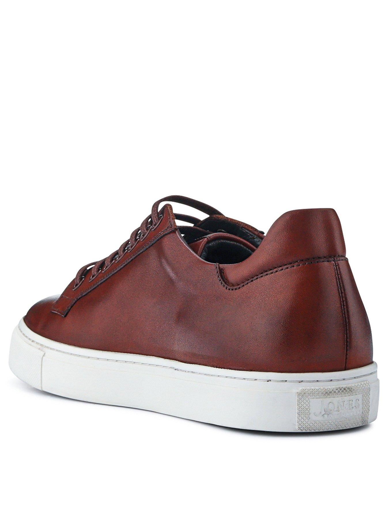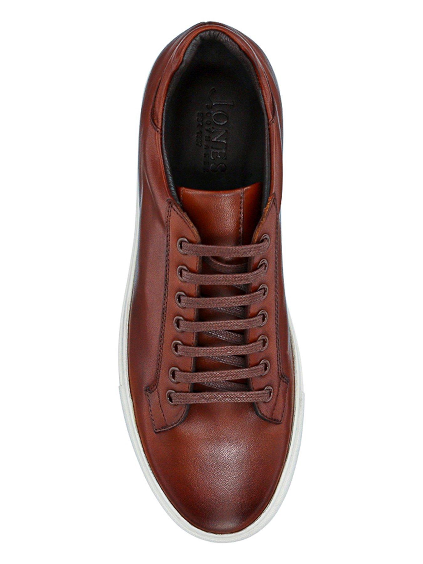 Jones Bootmaker Jones Bootmaker Simon Cupsole Trainer - Cognac LeatherRefreshing, comfortable and extremely necessary, Simon is the lace-up sneaker that loosens up the formalities of workwear tailoring. A low-cut design made with polished leather uppers that offer a pared-back profile. Standing on an Italian-made rubber cup sole with pure leather linings and a cushioned footbed giving comfort that keeps you on your feet from dawn to dusk. As for the fit? If you are in between sizes we fully recommend to go down a size.