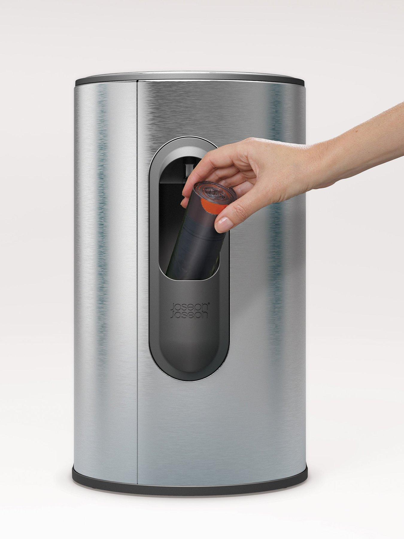 Joseph Joseph Arc 10l BinThis streamlined, circular bin has a large pedal that fits neatly within the footprint of the bin, making it easy to open and saving valuable floor space. It also features a handy storage compartment for liner rolls, a soft-close lid with a fingerprint-proof coating and an easy-empty removable bucket. Finished in stylish stainless steel, it has a capacity of 10L (2.6 US Gallons) and is compatible with Joseph Joseph IW9 custom-fit liners.
