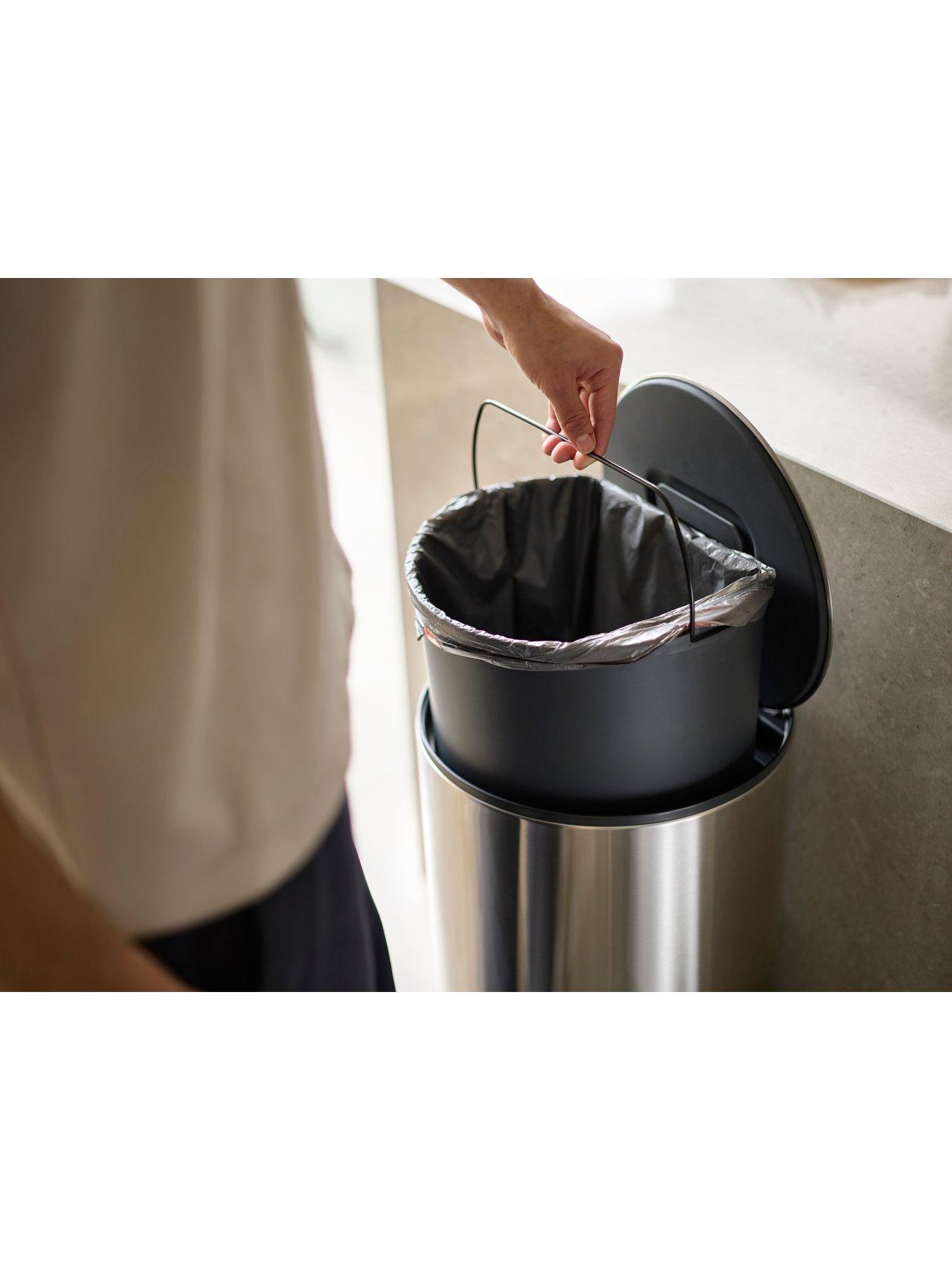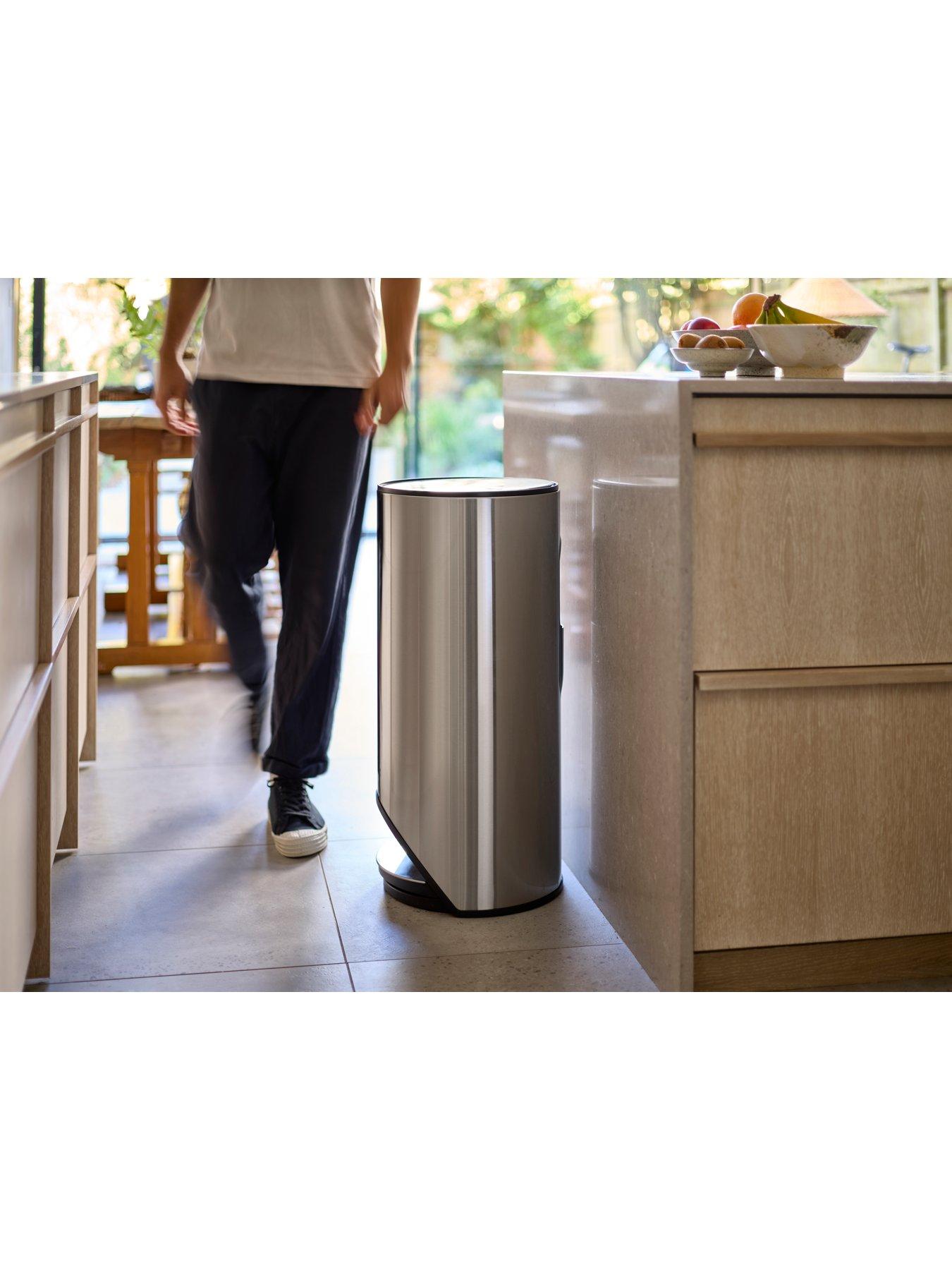 Joseph Joseph Arc 30l BinThis streamlined, circular bin has a large pedal that fits neatly within the footprint of the bin, making it easy to open and saving valuable floor space. It also features a handy storage compartment for liner rolls, a soft-close lid with a fingerprint-proof coating and integrated odour control via a replaceable filter in the lid. Finished in stylish stainless steel, it has an easy-empty removable bucket, a capacity of 30L (7.9 US Gallons) and is compatible with Joseph Joseph IW5 custom-fit liners.