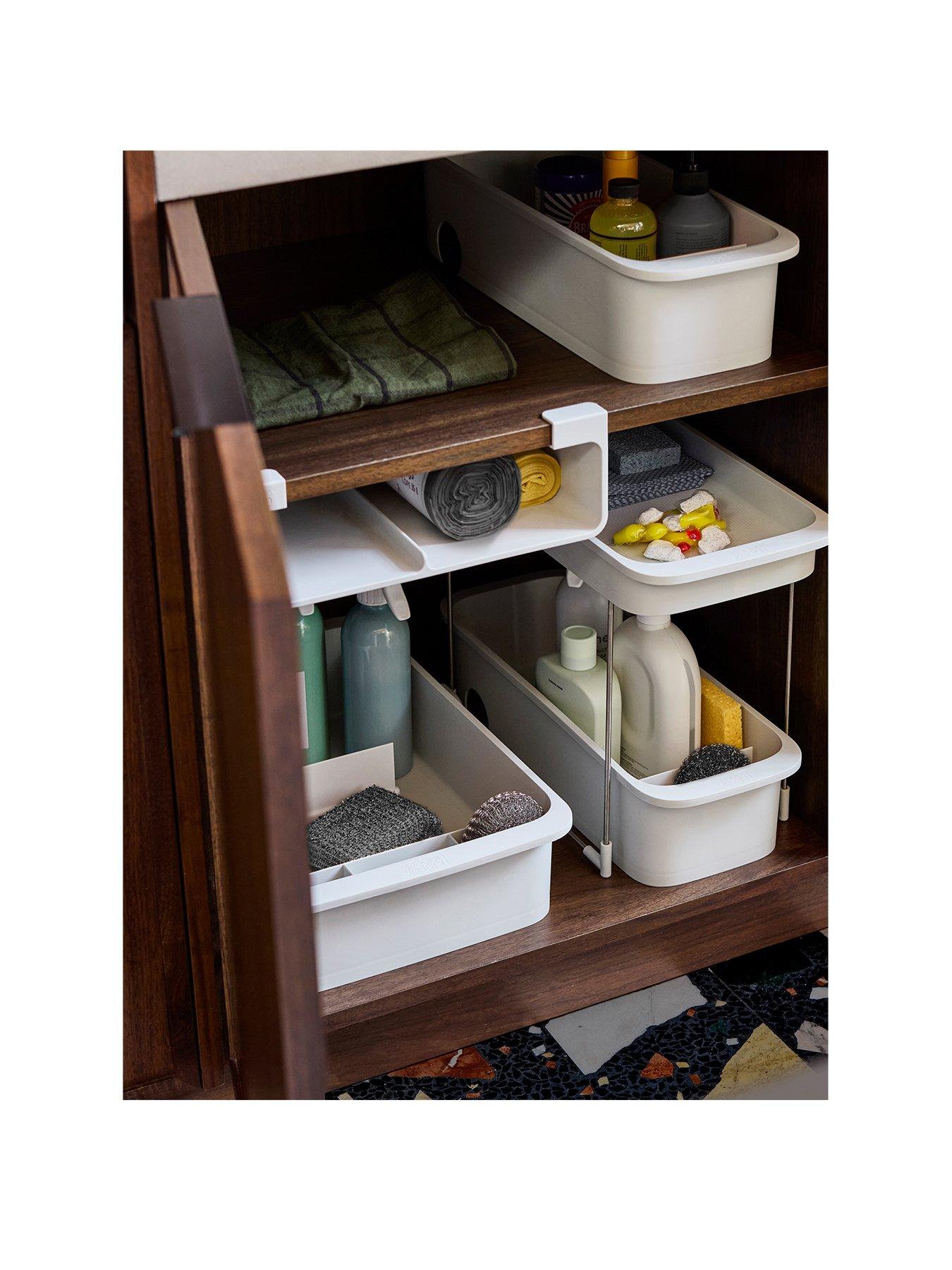 Joseph Joseph Cupboardstore Film Foil Bag - LargeUtilise unused cupboard space with this film, foil, and bag organiser, designed to attach securely beneath shelves. Ideal for holding standard- sized rolls and boxes, it helps declutter your kitchen and keeps essentials within easy reach. The organiser is simple to install, offering a tool-free setup using strong 3M VHB tape, with the option to secure it with screws if preferred. It's also made with a minimum of 50% post-consumer recycled plastic. Dimensions: H9 x D22 x W26.3 cm (H3.5 x 8.7 x 10.3 inches).