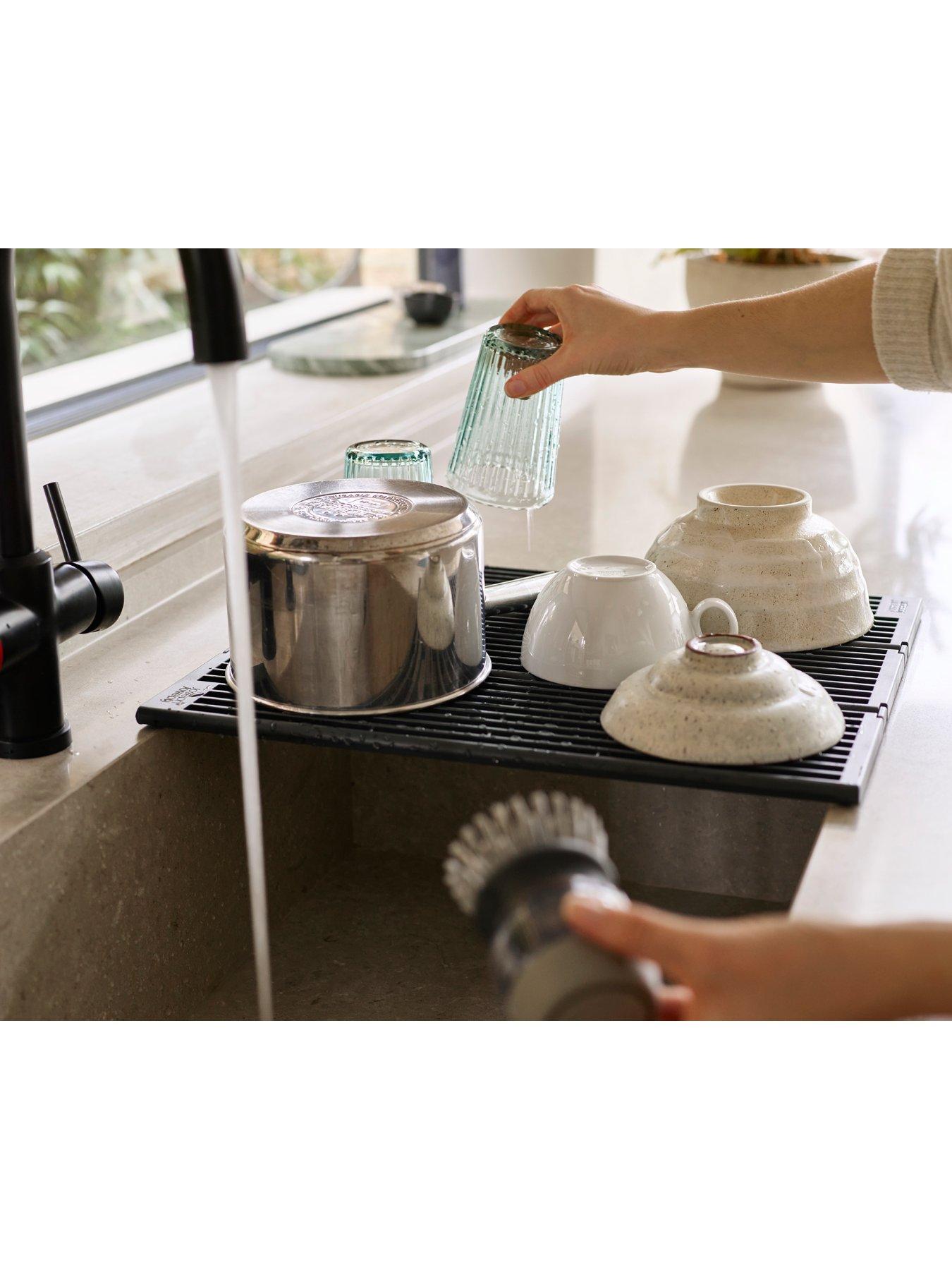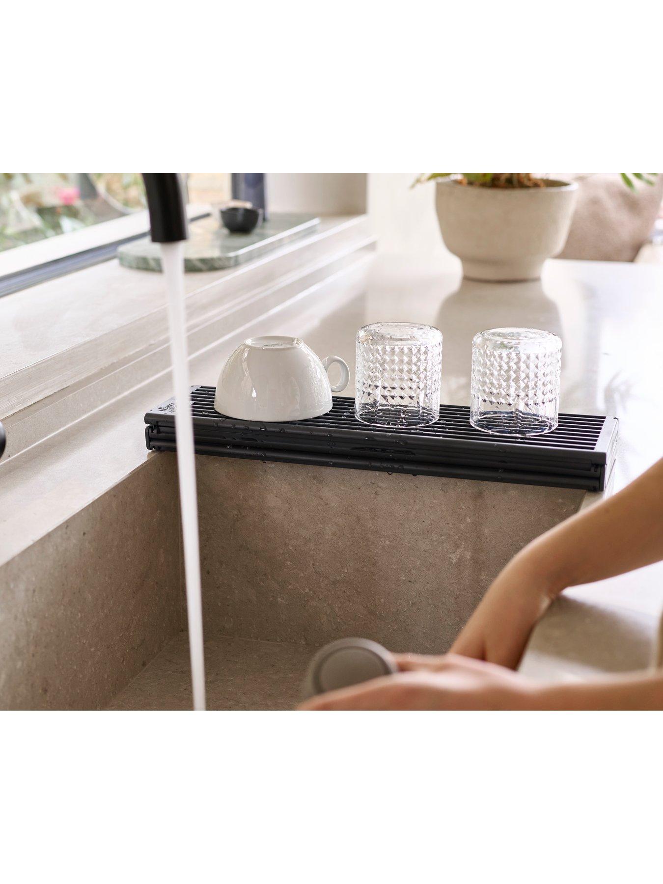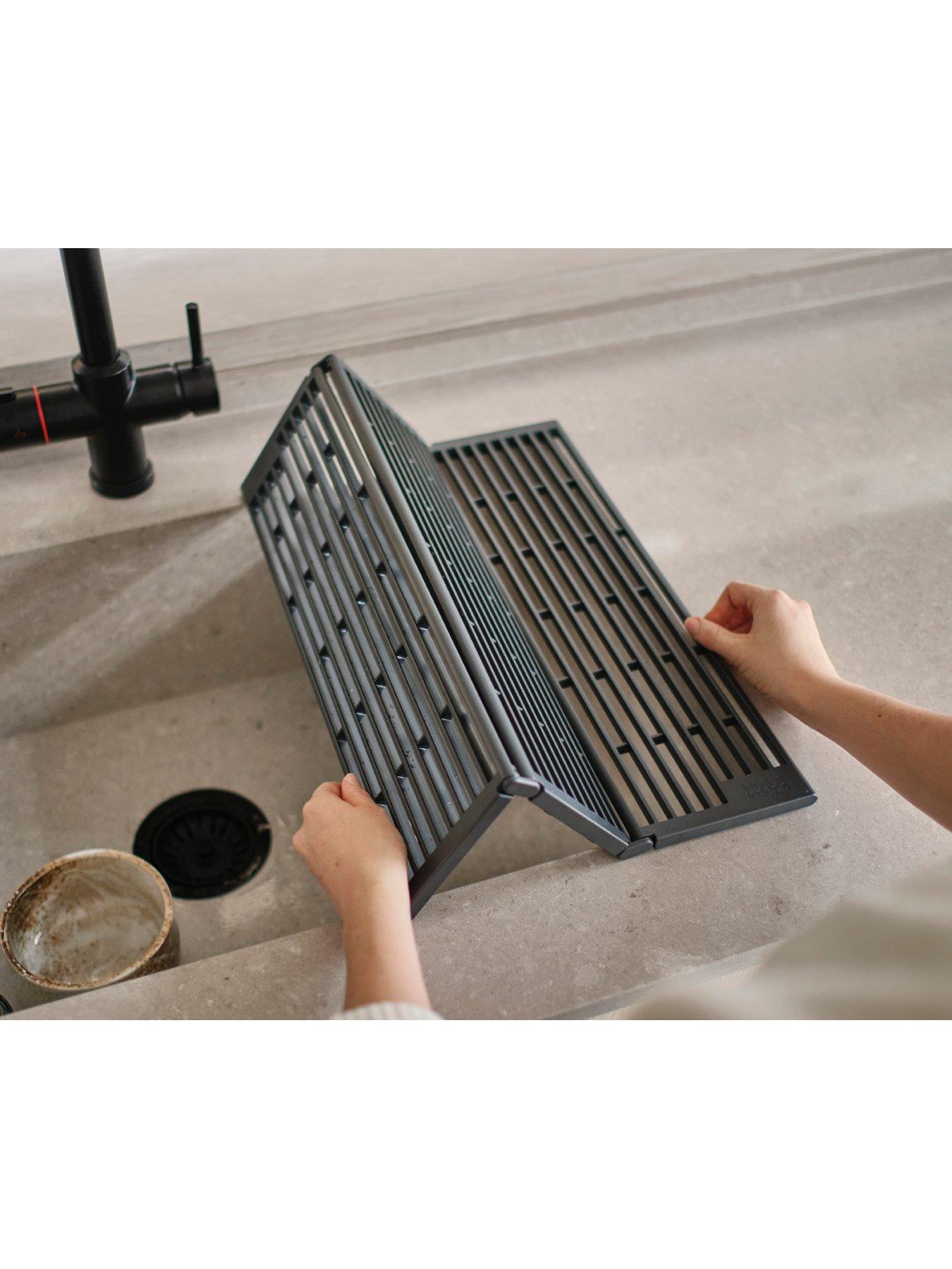 Joseph Joseph Platform Folding Over Sink DrainerCreate space around your sink with this clever folding over-sink drainer. Designed to fit neatly across your sink, it features a gridded design for speedy drainage and good airflow for fast drying, and can be adjusted for draining different sized items. Once you are finished draining your items, it folds neatly for space-saving storage.