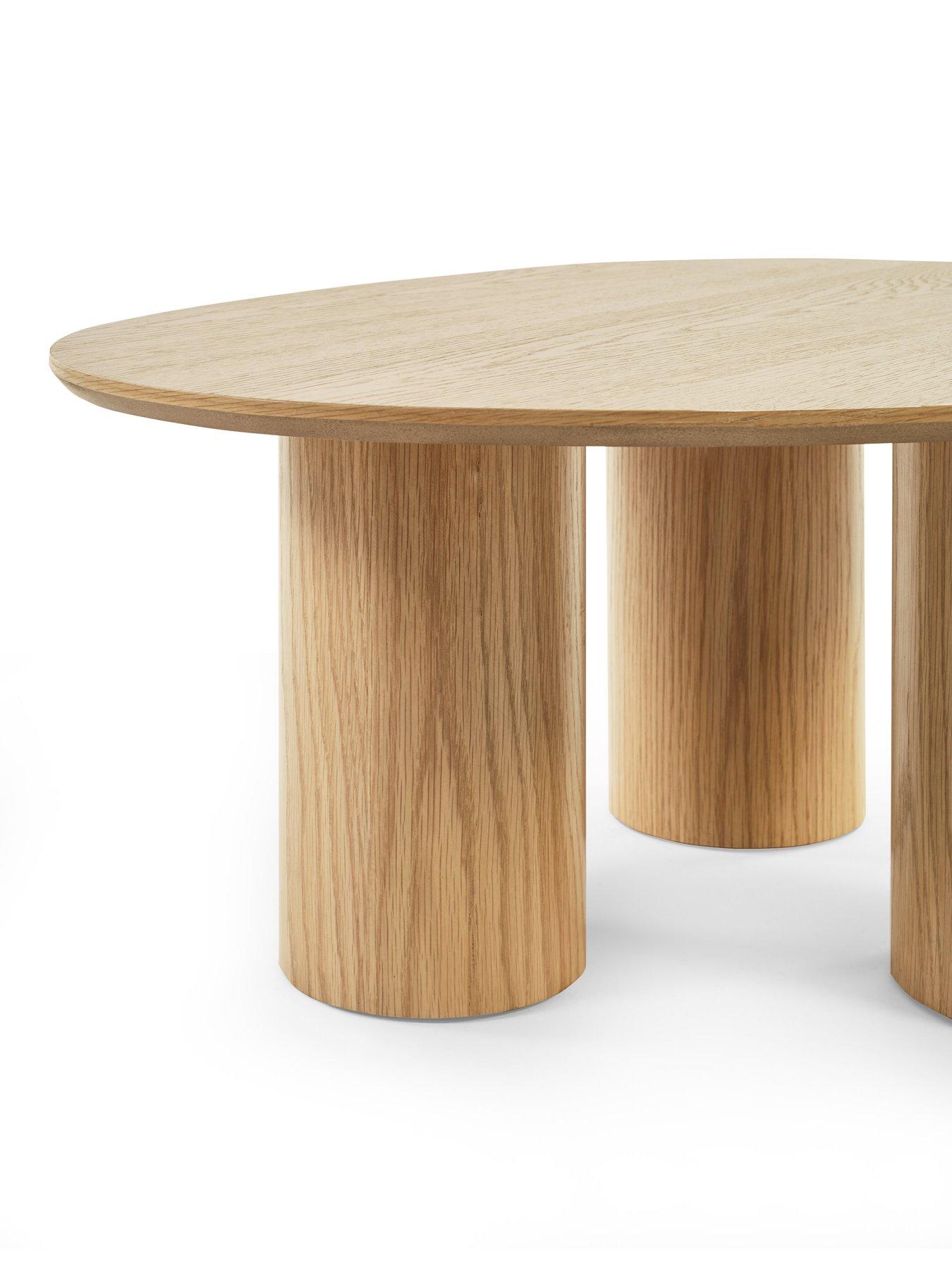 Julian Bowen Anya 78cm Coffee TableBring sculptural elegance and modern calm into your home with this statement coffee table. Its asymmetrical tabletop design breaks away from traditional shapes, creating a striking focal point while still offering plenty of usable surface space. Balanced on three cylindrical legs and beautifully finished in a warm oak effect, it blends artistry with everyday function. Perfect for Scandinavian-inspired interiors, its sleek minimalism shines when styled with books or ceramics for a curated touch. Ideal for both daily living and weekend hosting.