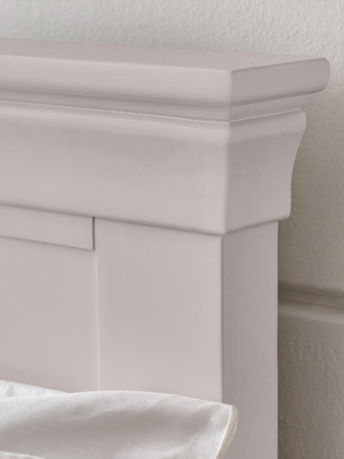 Julian Bowen Clermont Bed Frame in Double and King Sizes - Light GreyIntroduce a touch of French elegance to your bedroom with the Clermont Bed in Light Grey. This exquisite bed combines style and durability, crafted from a blend of pine and MDF to ensure lasting quality.The soft grey finish adds a contemporary vibe, brightening any room, while the solid pine slats provide robust support for a restful night's sleep. Thoughtful details like top-tapered cornices and a unique cut-out plinth base give this bed a refined sophistication. Its timeless design suits both modern and traditional interiors seamlessly. Mattress sold separately.