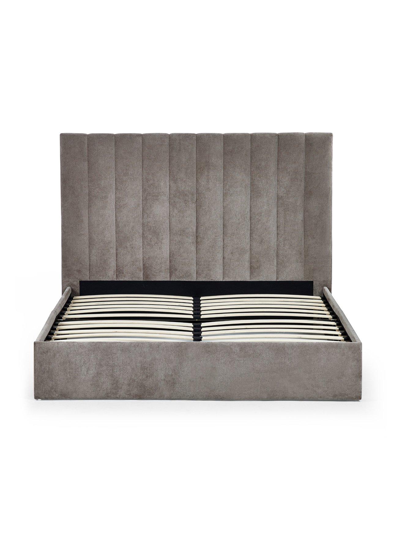 Julian Bowen Eloise Bed in a Box - Single, Double and King Sizes - GreyTransforming your bedroom into a haven of luxury is easy with this Eloise bed by Julian Bowen, which arrives conveniently packaged for super-easy set-up.Upholstered in a sophisticated chenille fabric, the grey shade will match all sorts of different bedding colours and patterns. The headboard features a modern vertical panel effect, making it a true centerpiece that draws the eye and catches the attention. Plush padding enhances its visual appeal and invites you to lean back and indulge in cosy mornings or late-night reads. Please note: mattress must be purchased separately. Please remember to measure your available space before ordering. Dimensions: Single - Height 120, Width 102, Length 202 cm Double - Height 102, Width 149, Length 202 cm King - Height 102, Width 156, Length 212 cm