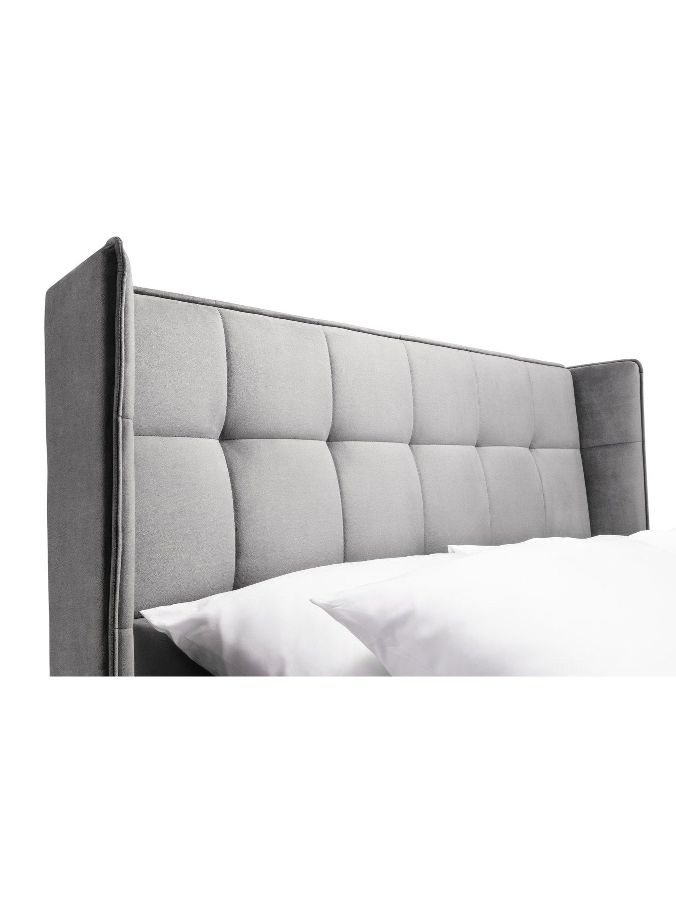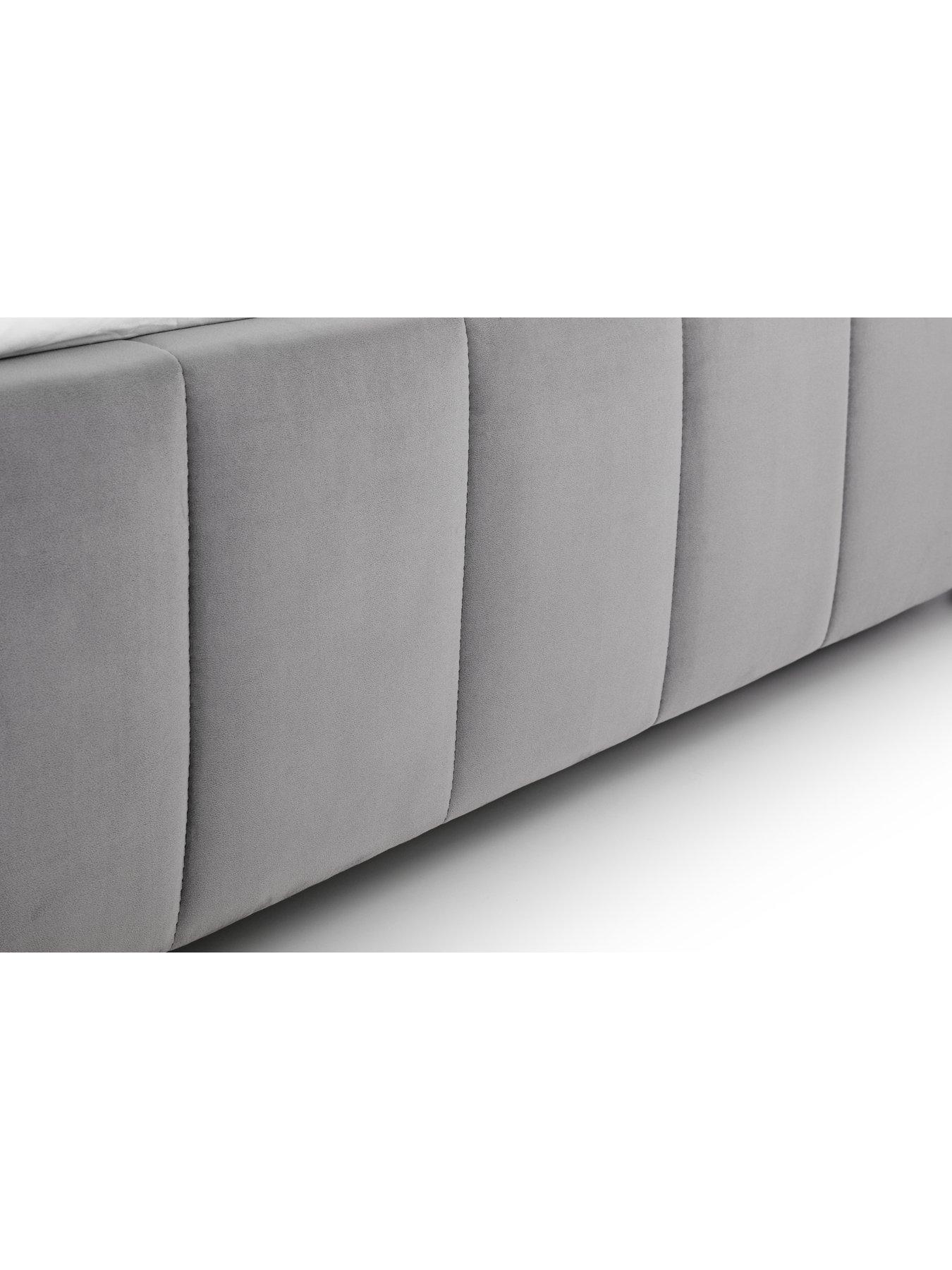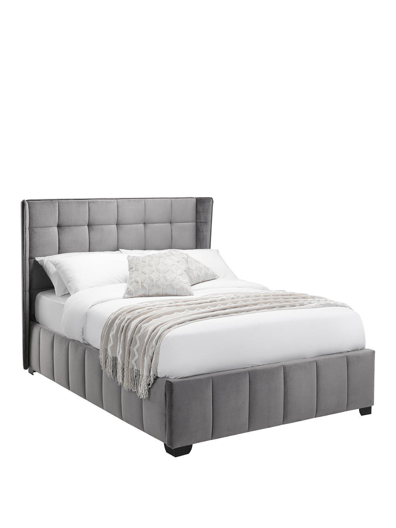 Julian Bowen Gatsby Fabric Bed in GreyTaking the style of the past and giving it a modern twist, the Gatsby bed frame from Julian Bowen is highlighted by a classic winged headboard. Softly padded for added comfort, it features decorative stitching, while the bed is upholstered in a sumptuous velvet fabric you'll love to run your fingers across.The smart grey shade will match all sorts of bedding designs and room colours, while sprung slats put plenty of support under your mattress (please note: mattress must be purchased separately). Please remember to measure your available space before ordering. Dimensions: Double - Height 128, Width 161, Depth 205 cm King - Height 128, Width 174, Depth 215 cm