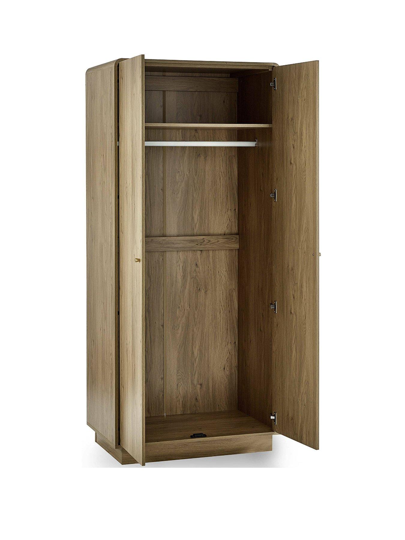 Julian Bowen Ingrid 2 Door WardrobeKeep your wardrobe stylishly organised with the Ingrid 2 Door Wardrobe. Its sleek wood-effect finish creates a natural and inviting look, while the curved edges lend a softer feel. Gold-tone handles add a refined elegance, making it a standout piece in any bedroom. Inside, a spacious hanging rail and shelving offer practical storage for clothes, shoes, and accessories. Designed for a quick and hassle-free setup.