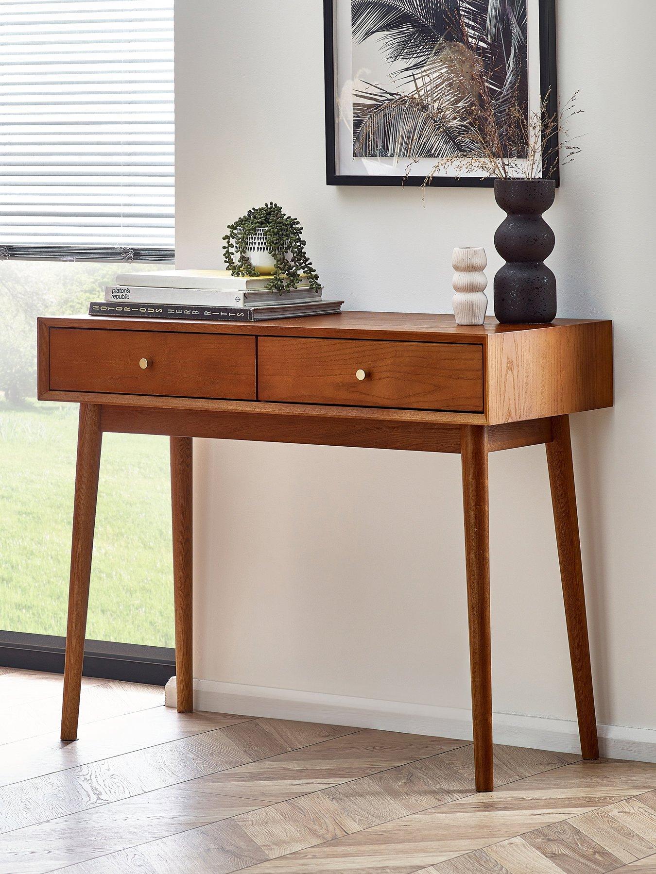 Julian Bowen Lowry Writing Desk With 2 DrawersA retro-inspired style with a nostalgic feel, the Lowry Writing Desk will add a timeless look to any home office space. Constructed from an exquisite cherry ash wood veneer with beautifully tapered legs. Featuring 2 pull-out drawers complemented by golden framed knobs. Providing the perfect ample storage space for stationary essentials. Part of the Julian Bowen Lowry Dining and Occasional Collection.