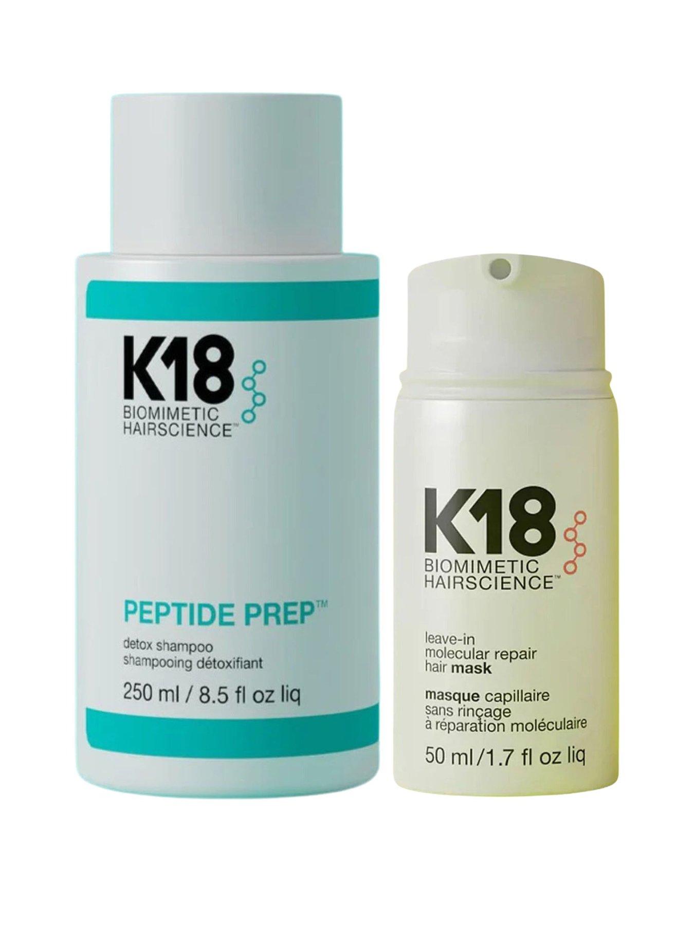 K18 Biomimetic Hairscience K18 Detox Shampoo & Mask BOMProviding colour-safe haircare, the shampoo is powered by the patented K18PEPTIDET. Working to nourish the strands, it detoxifies and refreshes the hair and scalp by removing product build-up, sebum and copper. Building into a lather, it works to unclog the hair follicles, removing dirt, oils and other debris. With a pH of 3.8-4.2, it cleanses without drying out the hair and helps maintain colour. Providing a deep cleanse of the hair and scalp, this shampoo provides the perfect prep to optimise further haircare treatments. Reverse hair damage with the K18 Leave-in Molecular Repair Hair Mask, a leave-in treatment mask designed to restore the hair in just four minutes. |