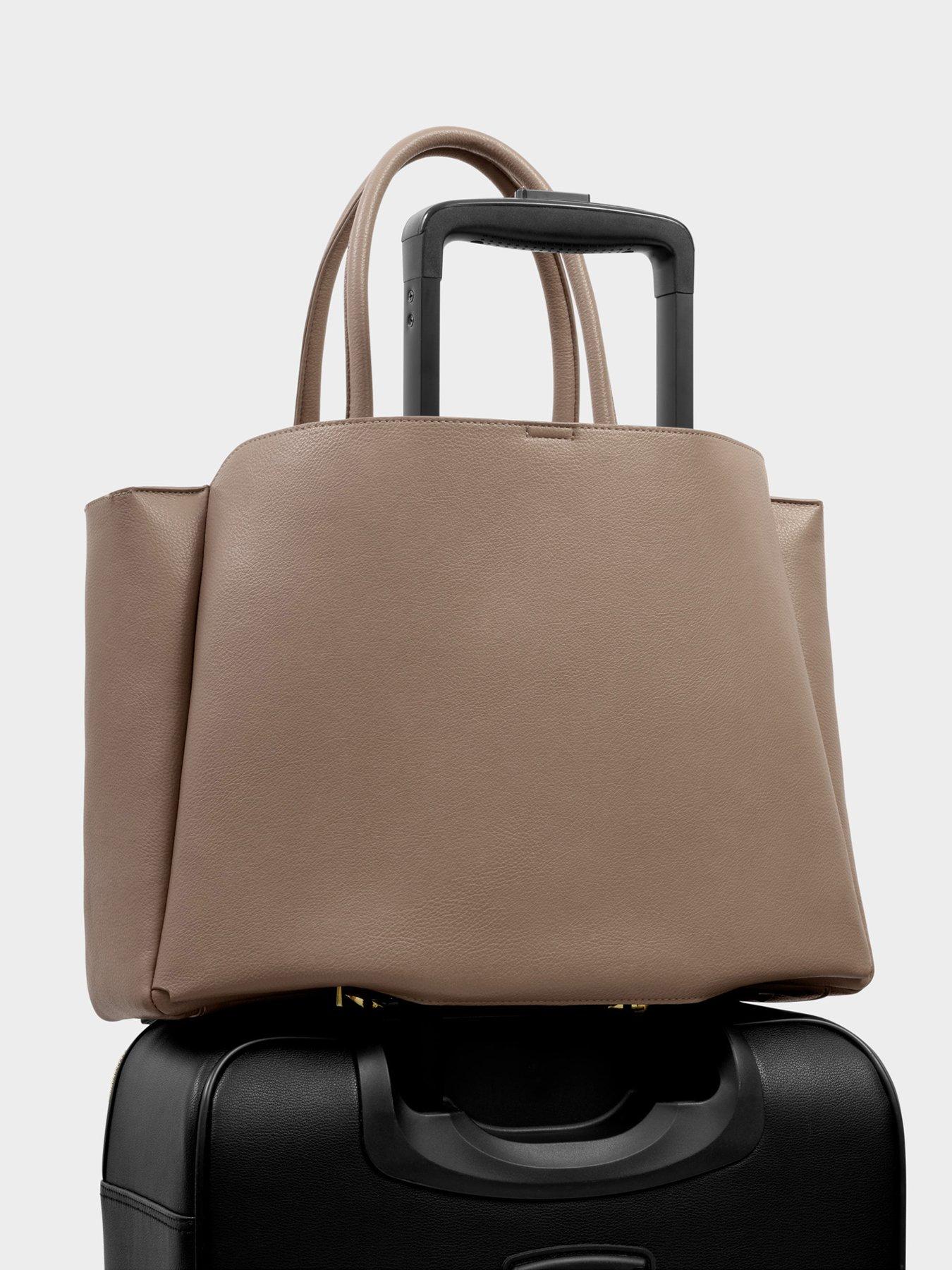 • Pass-through back pocket slips over a suitcase handle for easy travel