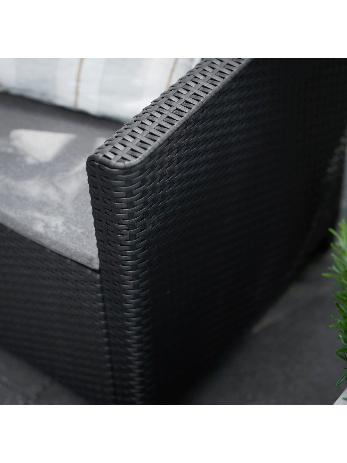 Keter Marie Garden 4-Piece Set With Coffee TableTransform your outdoor space with the Keter Marie 4-seater lounge set, the perfect addition to your garden or patio. Featuring a stylish wicker design, this lounge set offers both elegance and comfort. The ergonomically crafted seats, paired with plush cushions, create an inviting atmosphere for ultimate relaxation. The included storage table ensures your outdoor essentials stay secure and dry, adding both convenience and functionality to your setup. Built to be durable, weather-resistant, and low maintenance, the Marie lounge set is designed for easy assembly, letting you enjoy your outdoor oasis in no time! Ideal for those seeking a high-quality outdoor seating solution.