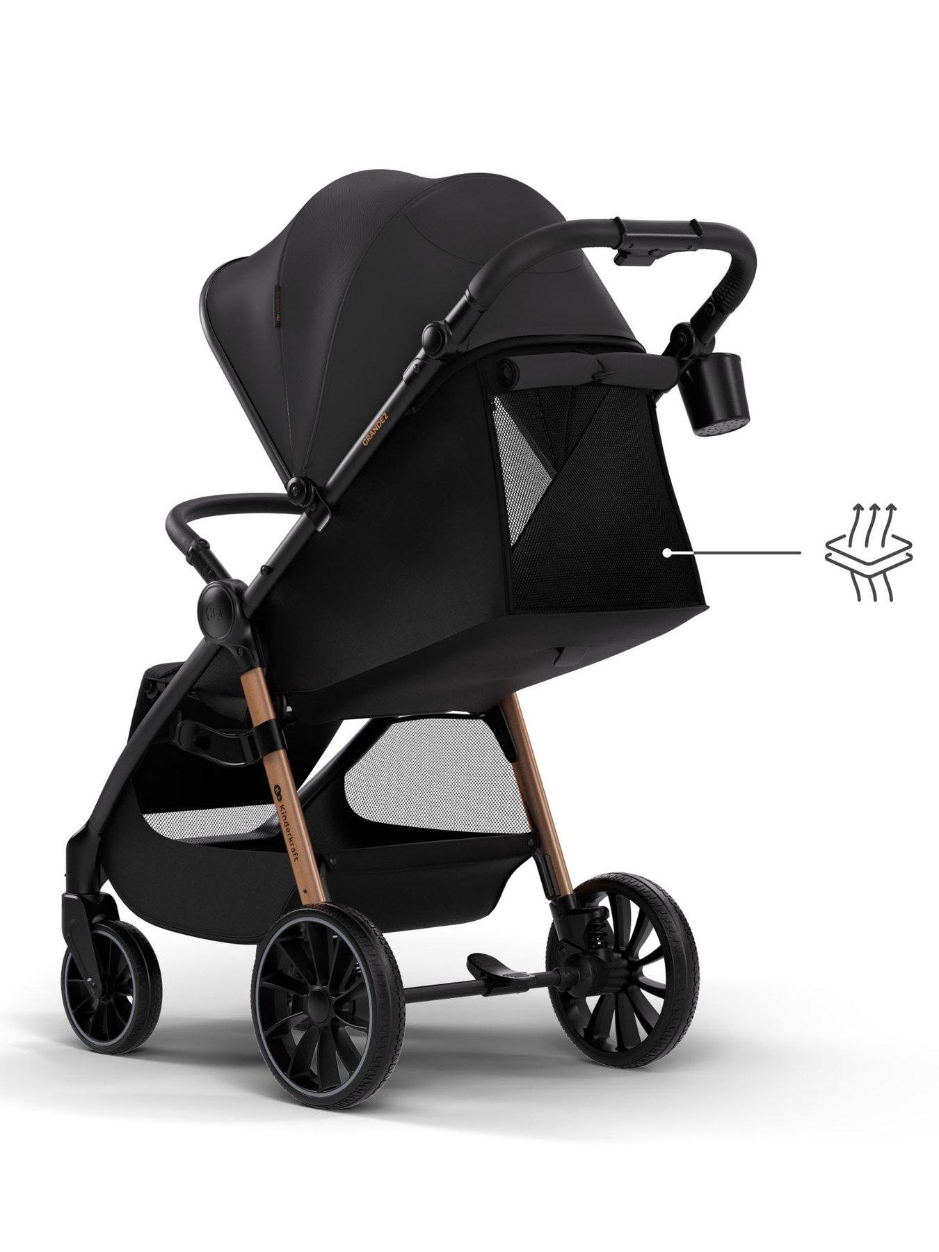 Kinderkraft Grande 2 Pushchair - BlackGRANDE 2 is a bestselling stroller designed for everyday city routes - from daycare, through the park, to quick shopping trips. Large, cushioned wheels smooth out bumps and make it easier to handle curbs, so your child's nap isn't interrupted by thresholds and cobblestones. The spacious seat offers room for both sightseeing and a comfortable nap - the backrest reclines smoothly and, together with the footrest, creates a flat position for rest. The CLICK&FOLD mechanism lets you fold the stroller with one hand, simplifying bus travel and home storage. Ergonomics for the carer are enhanced by a handle with 3-step height adjustment to reduce wrist and back strain. 5-point harness with quick adjustment and a bumper bar create a safe zone for everyday manoeuvres.