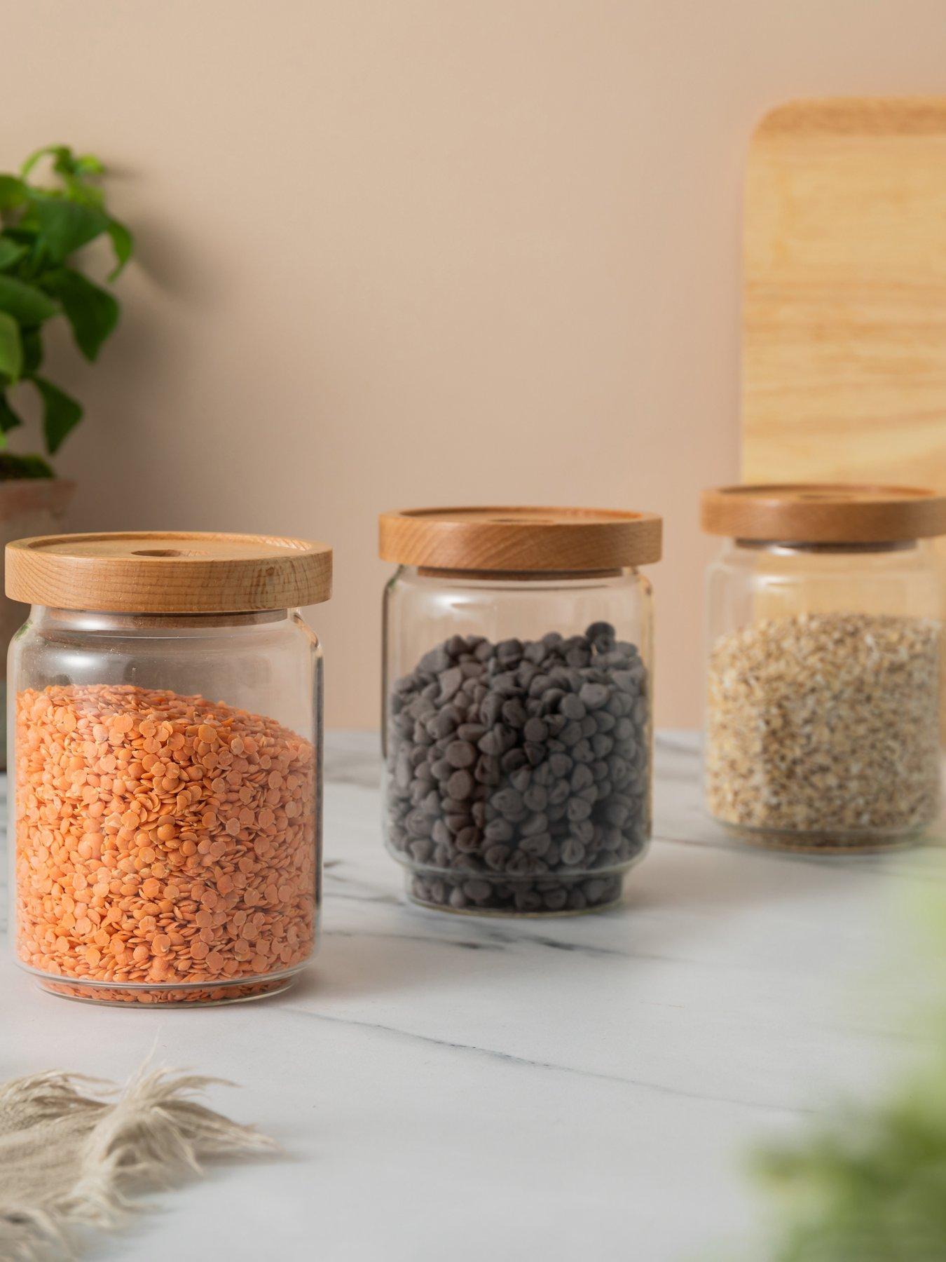 KitchenCraft Idilica 500ml Glass Storage Jars - Set of 3Idilica by KitchenCraft is a stunning collection that represents a peaceful lifestyle. Combining natural materials with elegant design, the whole range helps to build a feeling of calm and tranquillity when in the kitchen.This trio of storage jars is an essential for all your dry ingredients. With all three at 500 ml, each one is made from glass and topped with an airtight sealed beechwood lid. This makes them ideal for everything from your cuppa essentials – think tea, coffee and sugar – to your dry pantry necessities, including rice, pasta, oats and lentils. A charming alternative to plastic tubs, they’re a wonderful way to bring a rustic feel to your kitchen essentials. Search KitchenCraft Idilica to see the full range available.