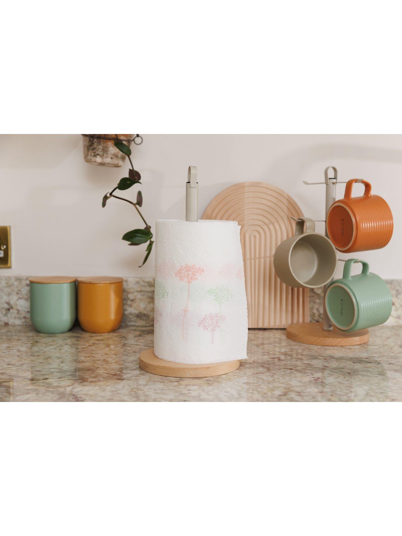 This kitchen towel holder has been crafted with a beech wood base, which keeps it sturdy while also providing a sense of rustic charm. Showcasing the natural grain of the wood adds to the warmth of the design, while the metal pole is finished with a hook for easy manoeuvrability as you’re cleaning up.