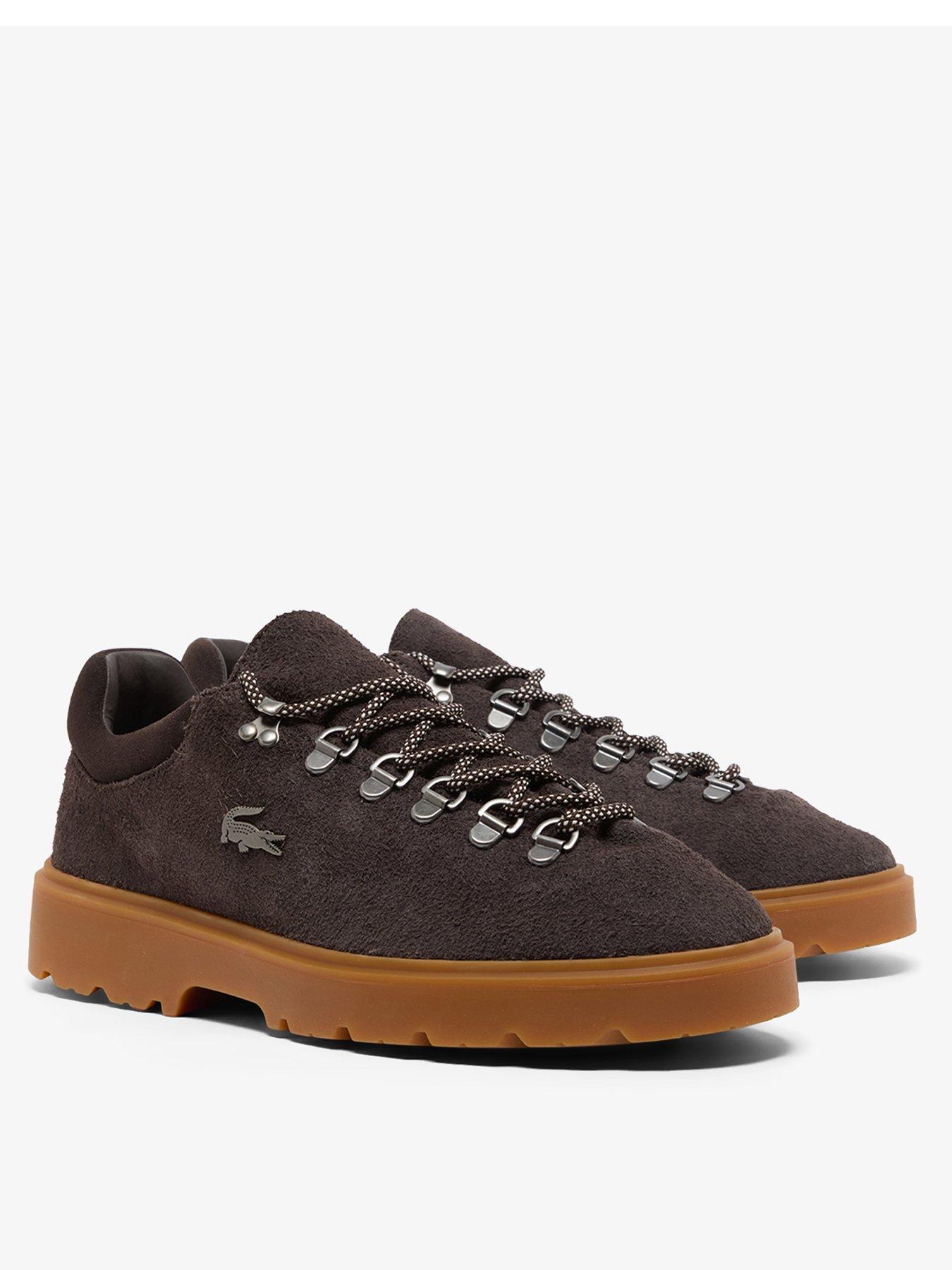 Lacoste Baseshot Suede Winter TrainersMen's Baseshot Winter Sneakers Textured suede upperLacing system with metal hooks and rings Two-tone rounded rope laces Padded collar for increased comfort and support Padded collar for increased comfort and supportTextured, robust, high-grip rubber soleMen’s Baseshot Winter SneakersTextured suede upperLacing system with metal hooks and ringsTwo-tone rounded rope lacesPadded collar for increased comfort and supportTextured, robust, high-grip rubber soleMetallic crocodile on center panelApproximate weight per shoe: 594.8gUpper: 100% Suede; Lining: 88% Polyurethane 12% Nylon; Insole: 70% Recycled Polyester 30% Polyester; Outsole: 92% Rubber 8% EVA