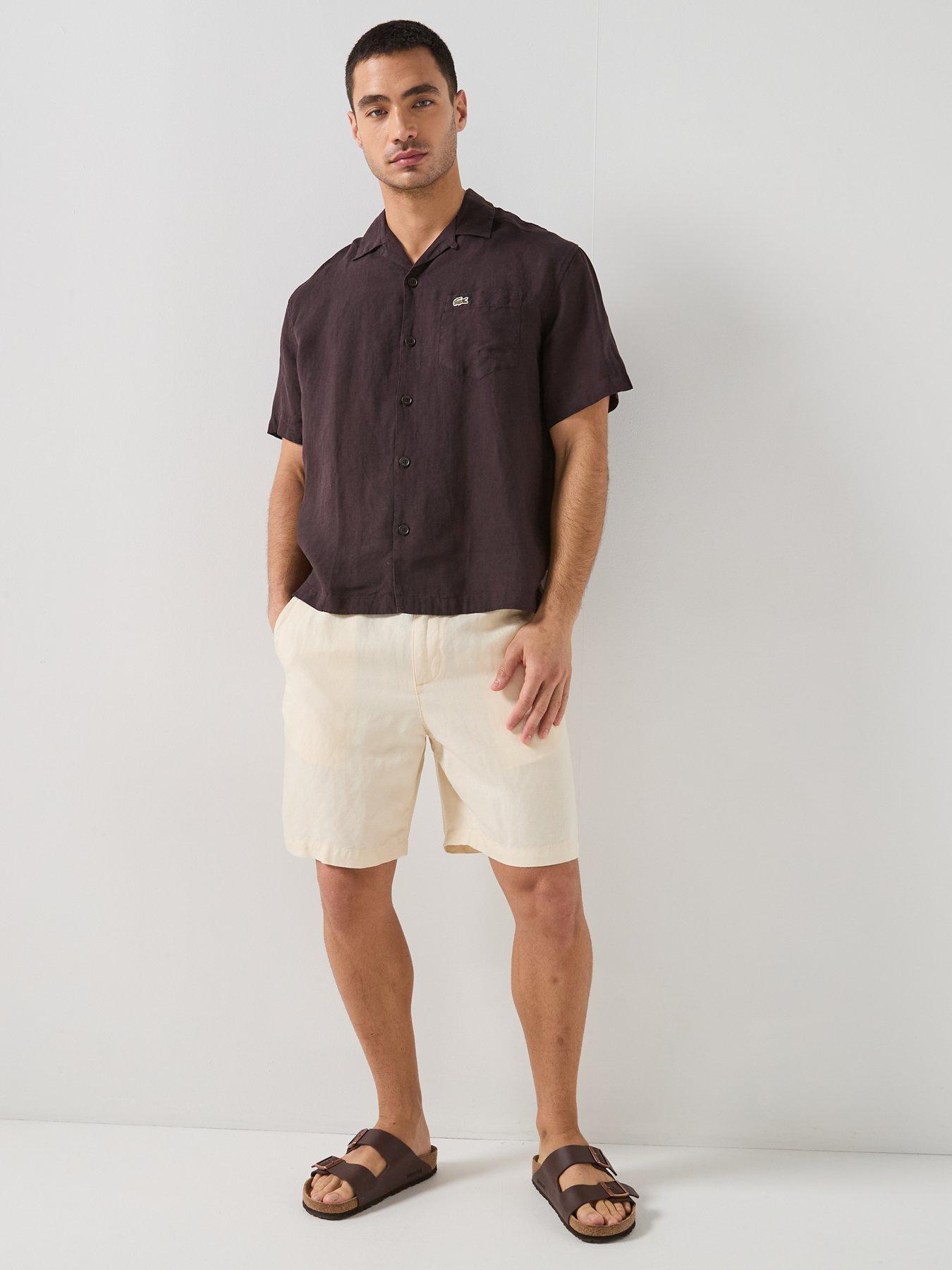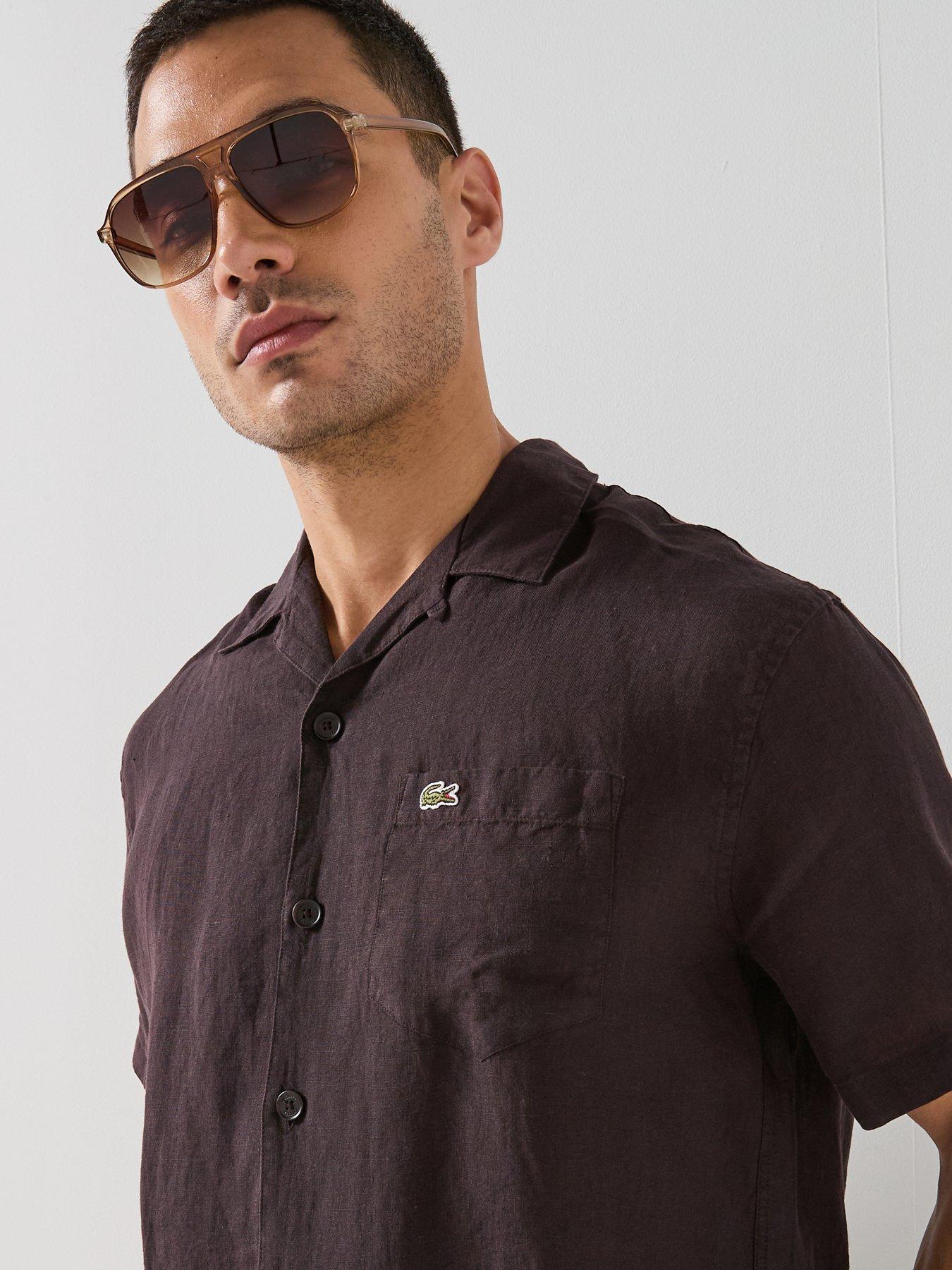 Lacoste Open Collar Linen Short Sleeve Relaxed ShirtSize & Fit