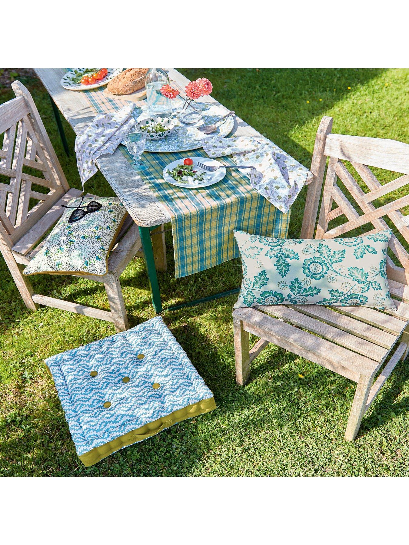 River Outdoor Cushions 50X30Cm GreenThis cheerful cushion (50x30cms) features a bright graphic floral trail in three gorgeous colour combinations, each with a plain coordinating reverse. UV and water resistant, they are perfect for a picnic in the park or a lounger in your garden. When the weather turns colder, remember to bring your cushions inside to keep them looking their best.