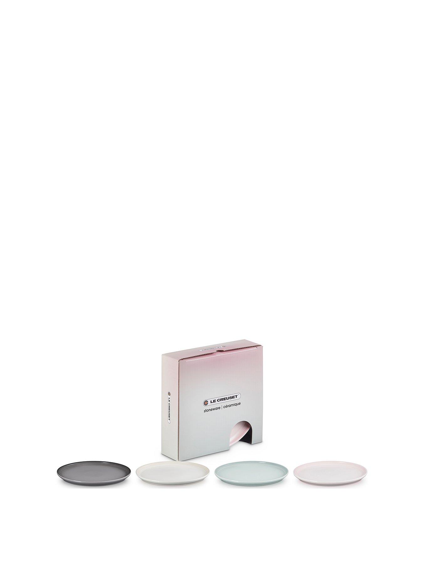 Le Creuset Set Of 4 22cm Coupe Side PlatesFeaturing a minimalist design the Coupe side plate brings elegant style to every table and occasion. The ideal size for small plates and deserts. A gorgeous set perfect as a gift or treat for yourself the Coupe Set of 4 side plates features fashionable hues of Flint, Sea Salt, Shell Pink, and Meringue. Presented in a stylish gift box.Made from specialist clays and fired at the highest temperatures, all Le Creuset stoneware is strong and durable. The dense stoneware provides exceptional thermal resistance and maintains even temperature when cooking. Thanks to Le Creuset's enamelling expertise Le Creuset stoneware is also easy to clean and scratch resistant. Available in a wide range of vibrant colours. Covered by a Le Creuset 10 year guarantee. Care & Use - All Le Creuset Stoneware is safe for use in the microwave, freezer, fridge, dishwasher, oven and grill. The maximum oven-safe temperature is 260°C and a distance of 6.5cm should be maintained between the top of the item and the heating element.