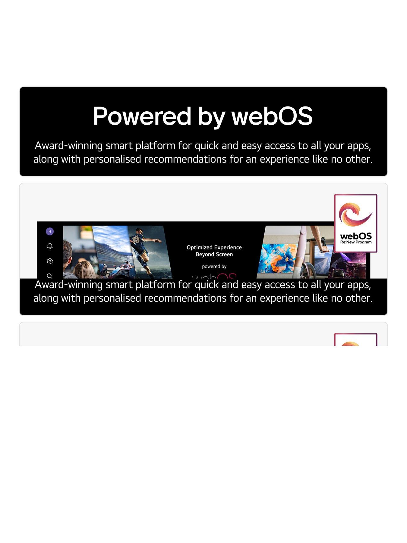 LG QNED70 43" QNED AI 4K HDR Smart AI TV - 43QNED70A6A.AEKDynamic QNED colour technologyLG QNED70A features the latest Dynamic QNED colour technology, which delivers content that is bursting with rich and accurate colours, with 100% colour volume displaying delicate differences in tone and colour spectrum. Smart processor for optimised pictures and sound The smart a7 AI Processor features 4K Upscaling for sharp pictures, and AI Brightness Control, which uses sensors to intelligently adjust the brightness based on the ambient light in your room. Plus AI Sound Pro to upscale stereo sound into an immersive, virtual 9.1.2 channel surround sound experience. Smart webOS Platform WebOS, LG's smart platform, hosts a huge variety of the best streaming services, while making browsing and searching for what to watch completely hassle-free. The smart platform is controlled with the LG AI Magic Remote, and opens up a world of information and assistance through a variety of AI-driven services. These include the AI Chatbot - which can help you to change the image or sound to your liking simply by asking, Voice ID - which can recognise different users and provide personalised recommendations, and much more. Stylish design The stylish design profile means that this TV will look great in any living space. Immersive cinema experience Support for Filmmaker Mode ensures the movie looks just as the director intended, and HDR technology provides an expanded colour palette and contrast range, for more impactful images. Game Optimiser & ALLM Level up your gaming by optimising the picture for whatever type of game you are playing. LG Soundbar synergy Pair with a compatible LG Soundbar to enjoy a seamless, connected experience with enhanced sound. WOW Orchestra utilises TV and Soundbar speakers simultaneously for an optimised experience. *Compatible with select LG soundbars