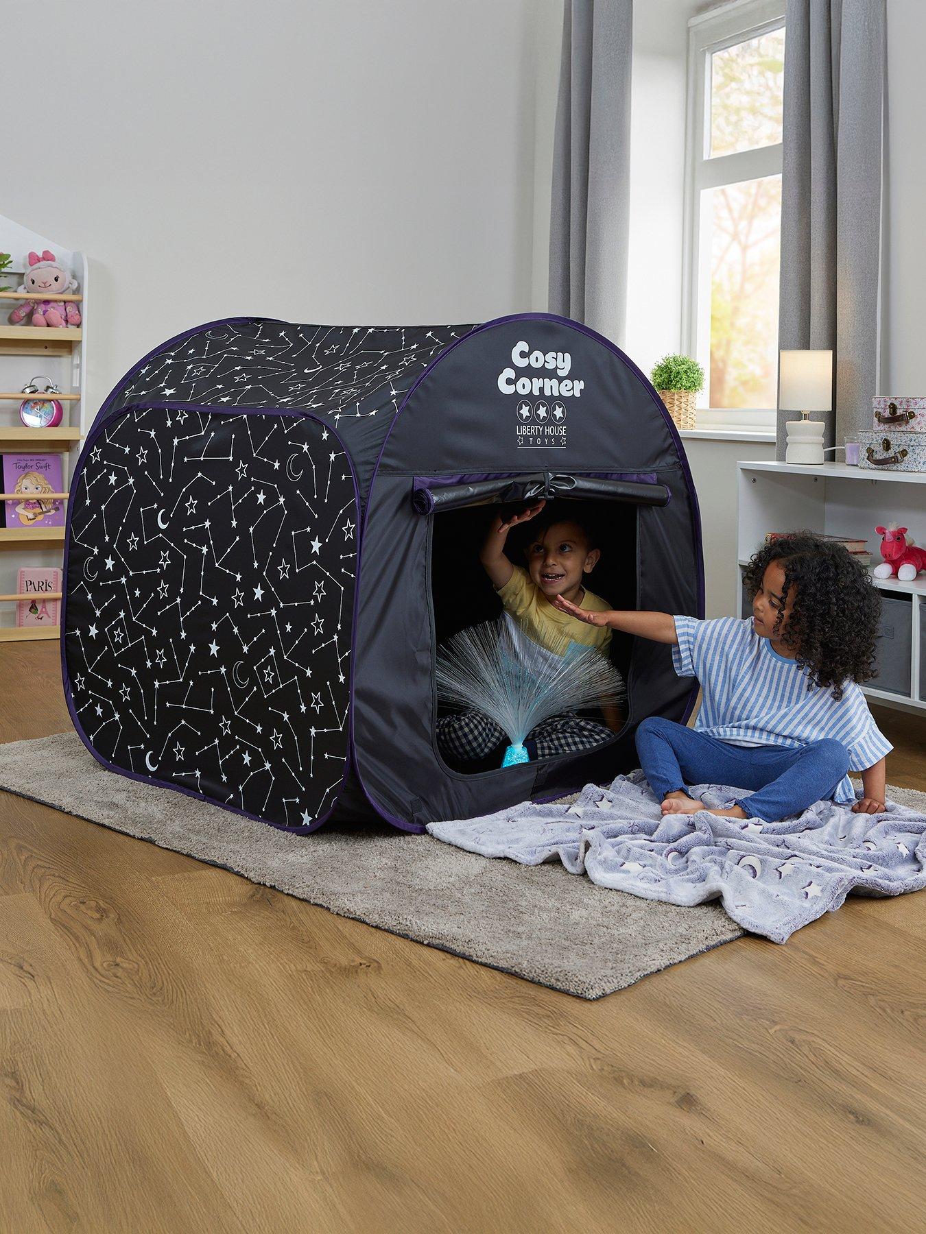 Liberty House Cosy Corner TentThe Liberty House Cosy Corner blackout tent will provide your child with a safe retreat that combines darkness with fun sensory experiences. Children will relax and let their imaginations run free in their own special hideaway. This set includes a snug space themed glow in the dark blanket that helps create an enchanting and captivating atmosphere that will mesmerise your child. In addition, a safe to touch and feel fibre optic lamp will enhance your child's sensory experience and help create a calm and inviting space to provide a feeling of privacy from the outside world. Fibre optic lights help children with neuro differences such as autism and ADHD engage with their environment and provide soothing therapy.