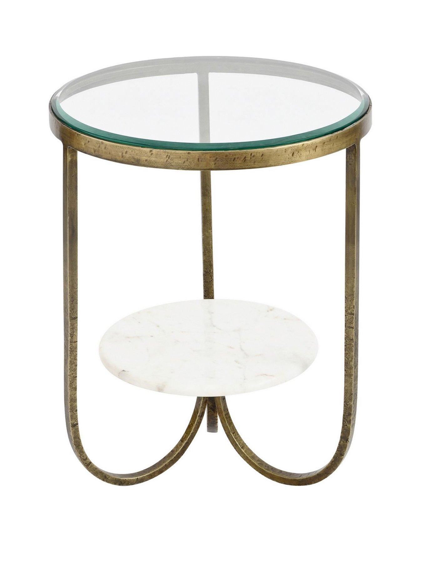Libra Interiors Nolita White Marble & Antique Gold Side TableThis elegant side table combines a bevelled glass top with a metal frame in an antique gold finish. A white marble floating shelf sets this contemporary occasional table apart, adding distinctive detailing as well as additional storage space. Due to the nature of the marble, each piece will vary slightly.