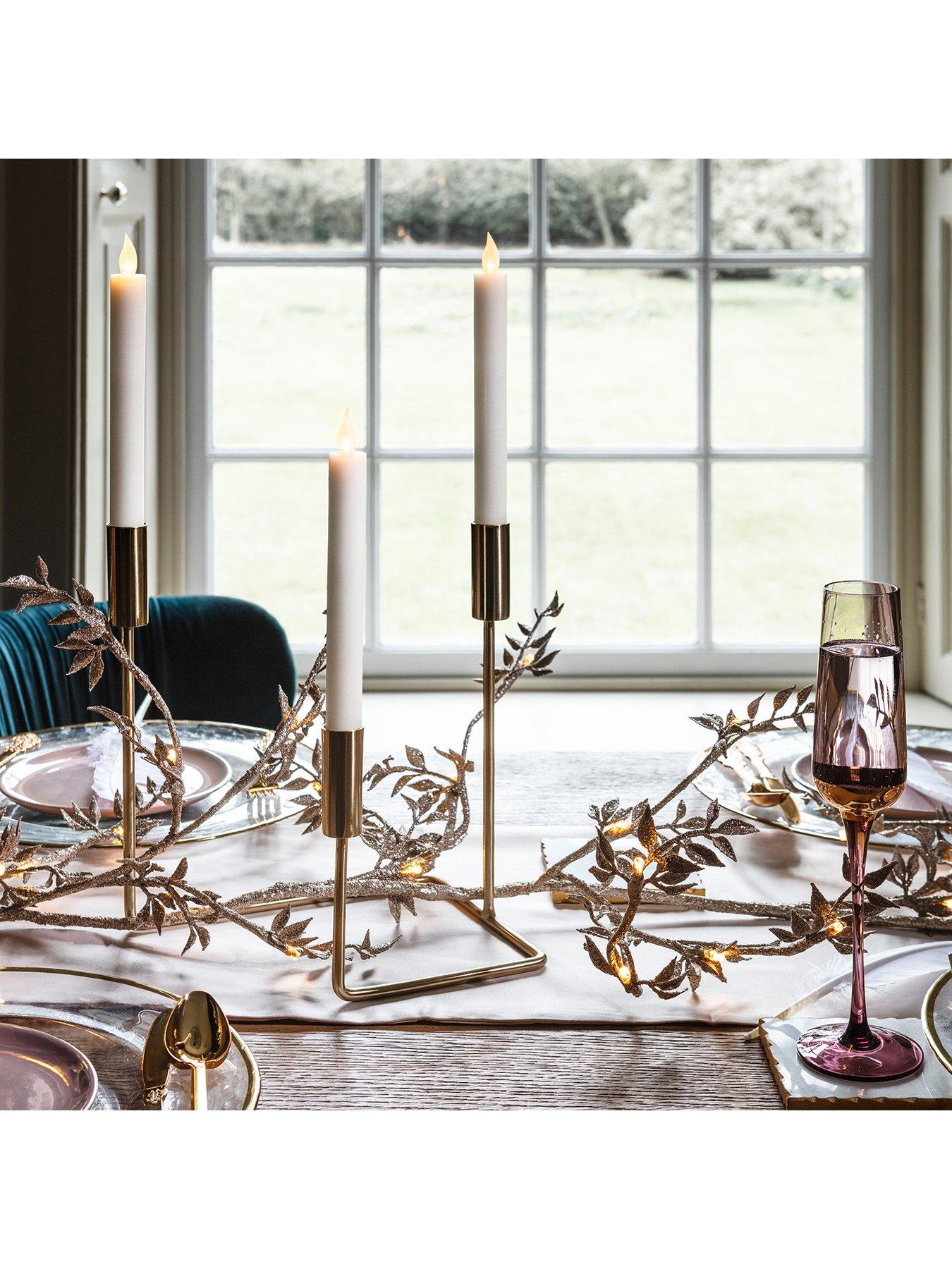 Lights4Fun 2 Ivory LED Taper CandlesModern LED technology meets timeless design for a beautiful product that's built to last. Crafted in ivory wax for a timeless look, this ivory duo features squidgy perspex wicks, each containing one flickering warm white LED for a nostalgic glow. These classic taper candles are an elegant addition to mantelpieces and table centrepieces alike. The innovative push top flame design makes this duo an event essential, plus they're slightly tapered at the base for the perfect fit in any standard candle holder. To illuminate, simply insert 2 x AAA batteries (not included) into each candle and push the wick downwards to switch on or off. Expect up to 180 hours of illumination before the batteries will need refreshing.