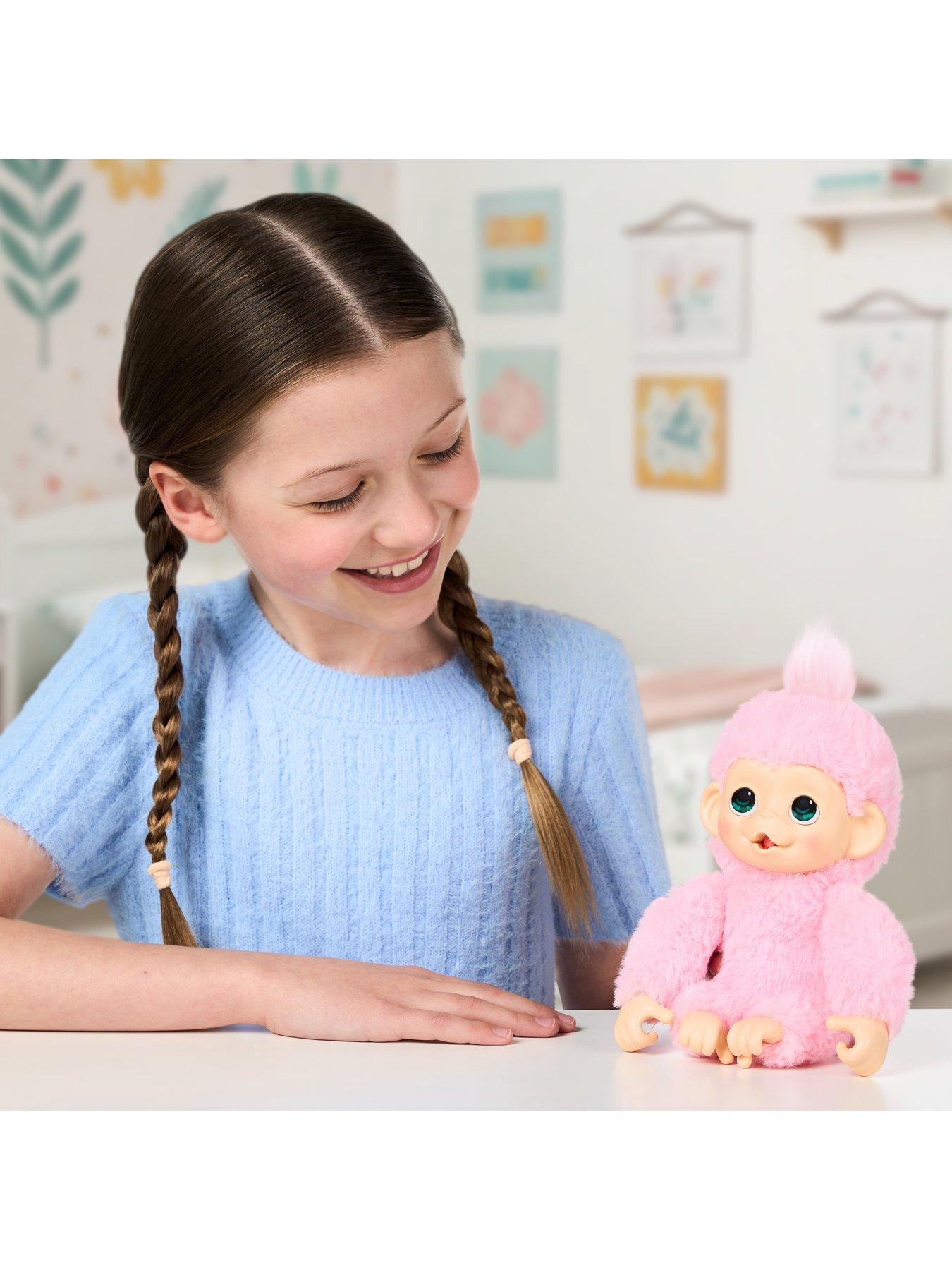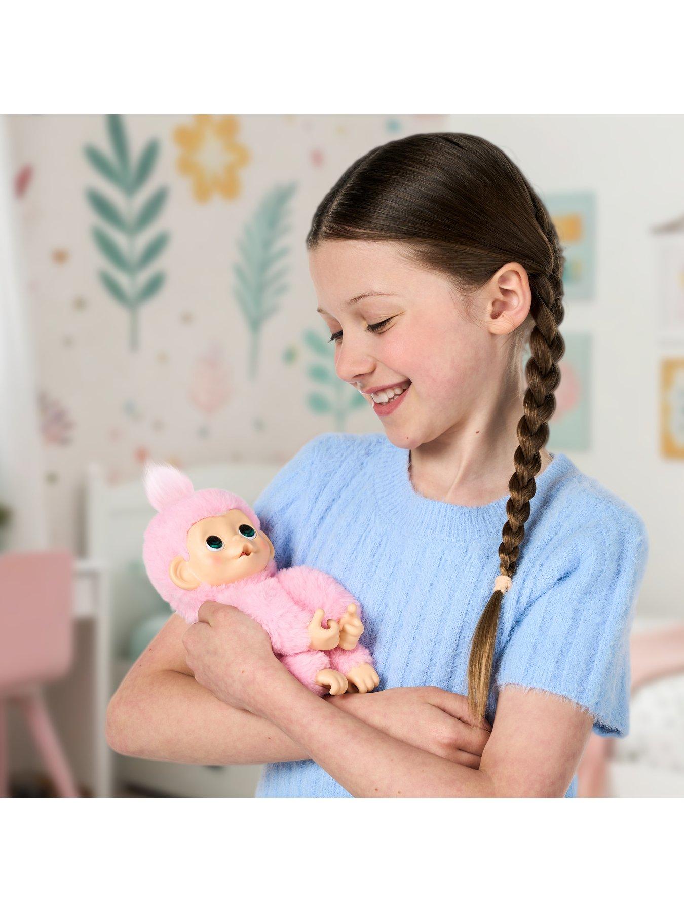 Little Live Pets My Baby Monkey Minis - Luna LemonLuna Lemon is the princess of the jungle and the most regal member of the Little Live Pets My Baby Monkey Minis family! With her soft pink fur, Luna loves to be pampered, cuddled, and adored. This cute mini monkey is packed with personality and ready to become your playful pal.Luna Lemon is interactive, responding to your touch with over 20 realistic sounds and reactions. Pet her, feed her, or let her suck her thumb, and she'll reward you with sweet monkey sounds. With her grippy hands and feet, Luna can cling, hang, and hug, just like a real baby monkey! Treat Luna like the royalty she is, and she'll love you right back. Soft, snuggly, and full of fun, Luna Lemon is your new best friend from the Little Live Pets world! Collect the whole cheeky trio - Luna Lemon, Chikki Cherry, and Pepi Peach - and link them together for even more monkeying around!