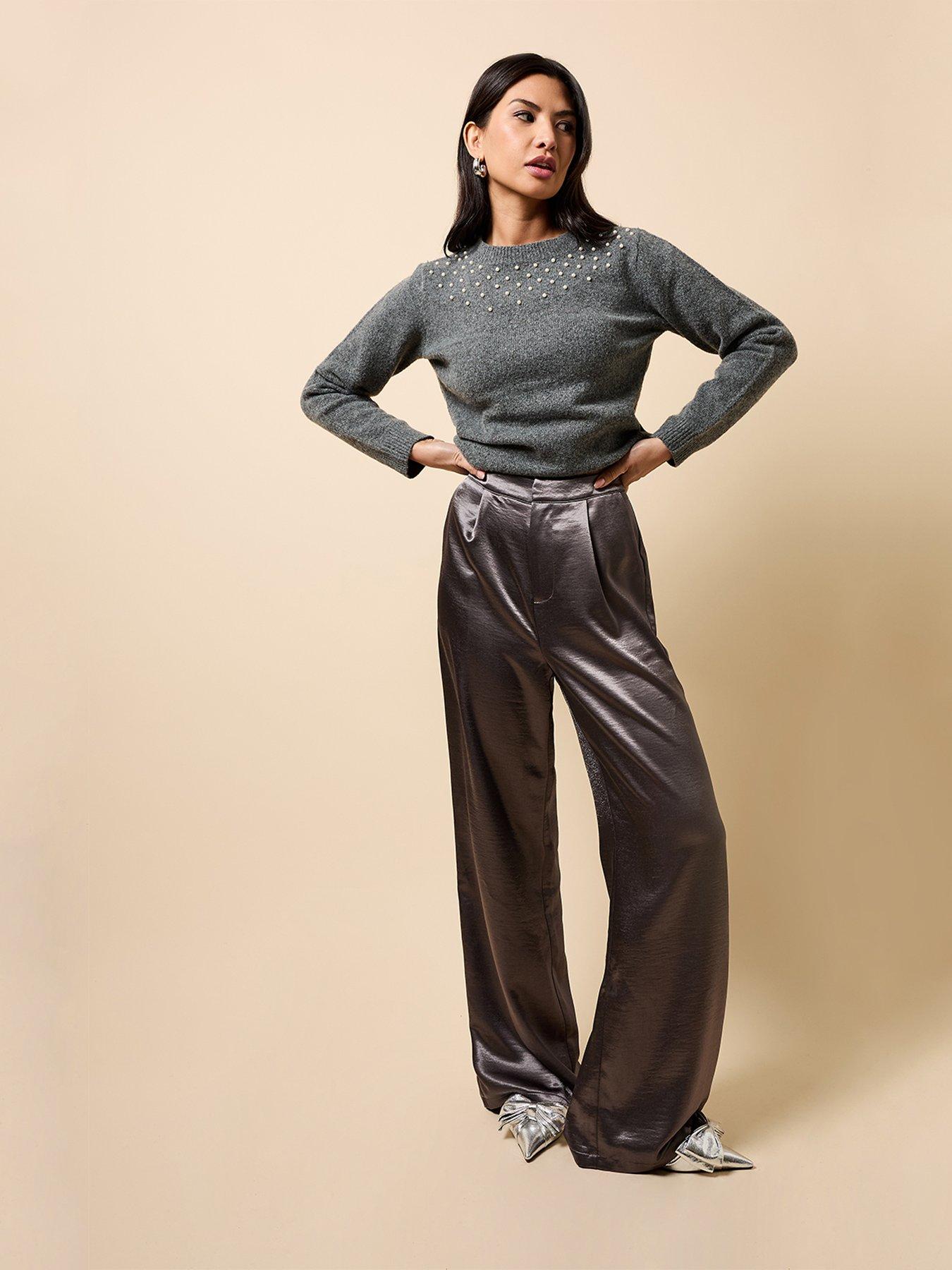 Little Mistress Satin Wide Leg Trousers