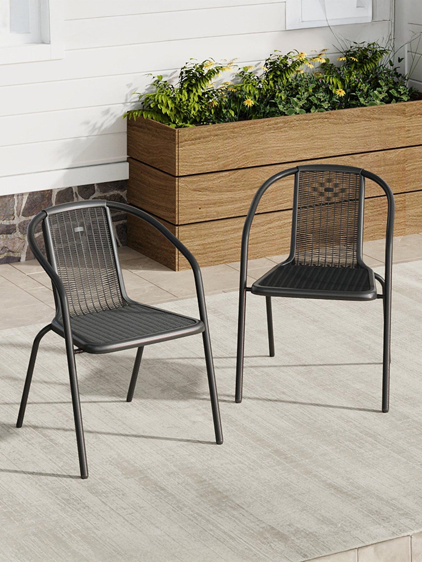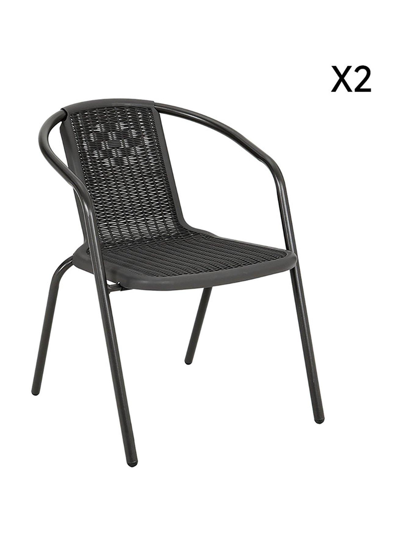 Living and Home 2 Pcs Stacking Garden Chair BlackThis chairs set intends to keep you company with its timeless design and incredible quality. Made of all-weather resistant PE rattan and supported by a rustproof metal frame, these patio dining chairs are durable and stable. Moreover, the stackable design helps save a lot of space when they are not in use. And when you need to move them to other places, the lightweight design can offer help. Seems casual but full of details, these rural-style chairs will definitely freshen up your garden.