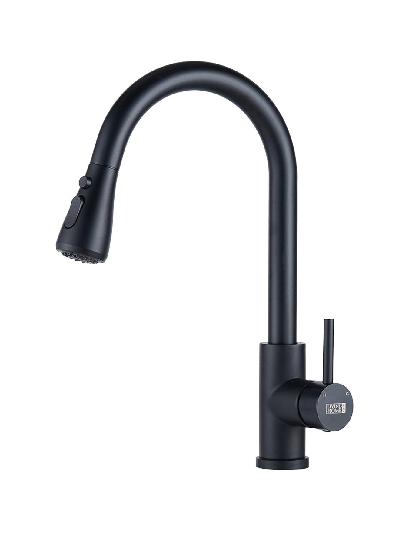 Living and Home Black Retractable Commercial Pull Out Kitchen FaucetElevate your kitchen with the sophisticated appeal of the Pulldown Kitchen Faucet. Its sleek and modern design is not only visually striking but also highly functional, encouraging regular cleaning habits. The flexible hose, equipped with a sprayer head, conceals two multi-functional switches, allowing for effortless switching between full spray and aerated stream modes. With this pull-down sprayer, cleaning becomes a breeze, and your daily chores will be a more convenient and efficient experience.