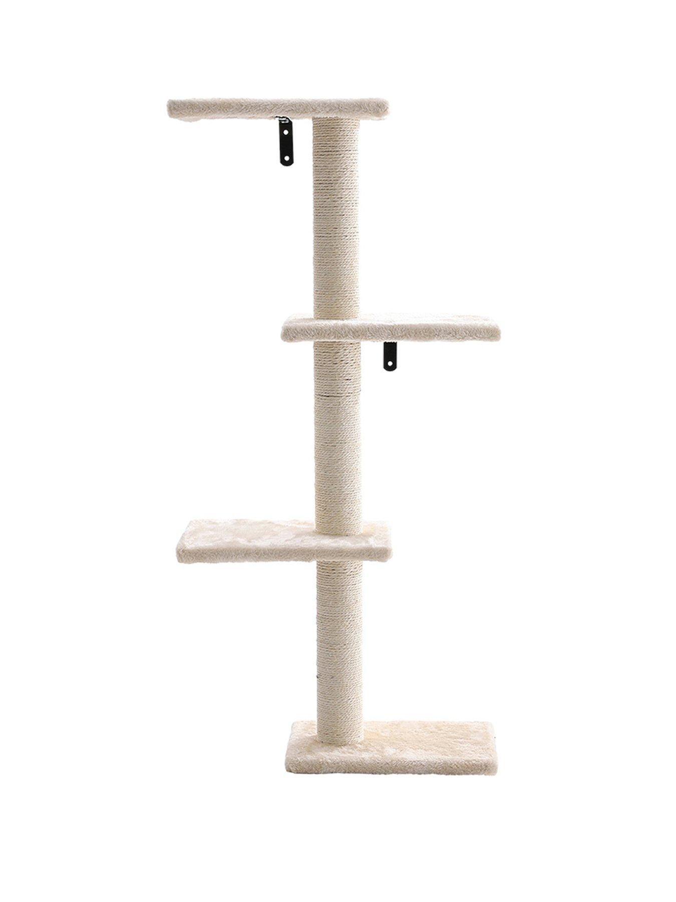 Combines natural sisal, soft plush, and wood to create an engaging and comfortable multi-textured playground for cats.