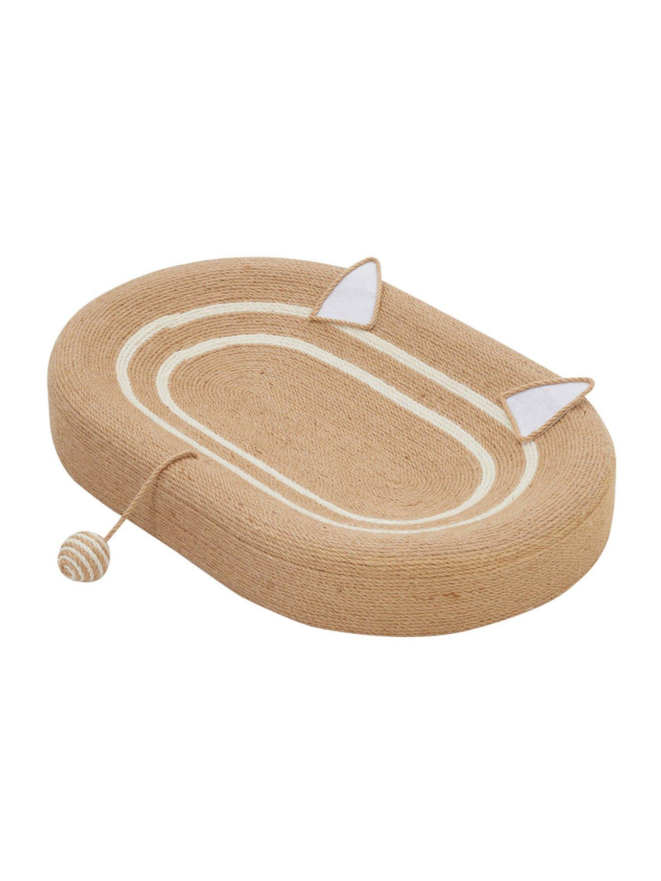 Living and Home Oval Cat Scratching Board BedThis cat scratcher bed is specially designed for cats, combining both scratching and resting functions. The textured surface allows your cat to stretch and relax, providing a comfortable scratching experience while effectively protecting your furniture from damage. The concave design offers better support for their spine, making it an ideal place for afternoon naps. The unique cat-ear design is not only adorable but also adds a fun touch to the product. The included hanging ball toy enhances interaction and entertainment, satisfying the curiosity and exercise needs of your cat. Whether in the living room or bedroom, this cat scratcher will seamlessly blend into your home decor and become a charming addition to your living space.