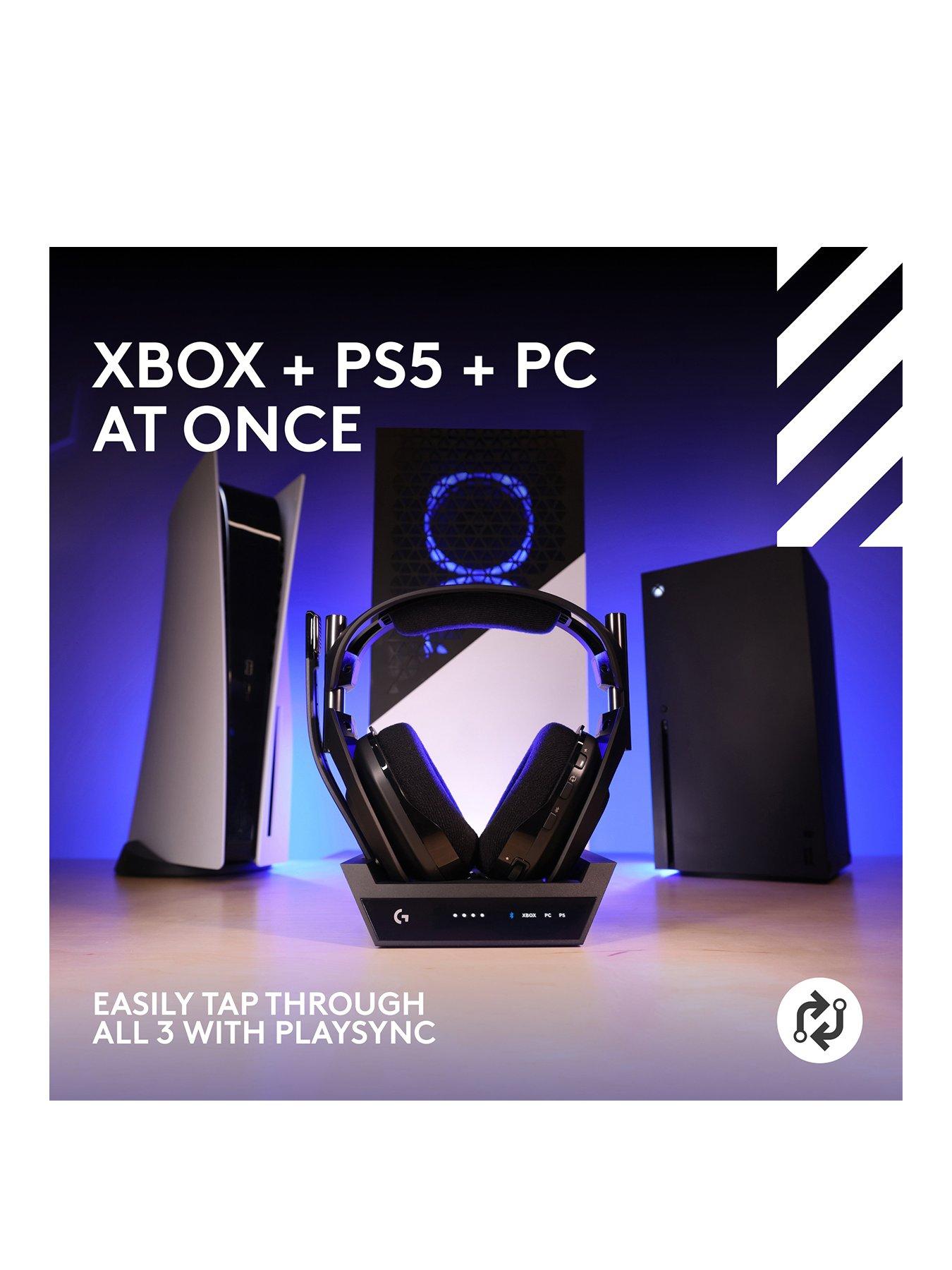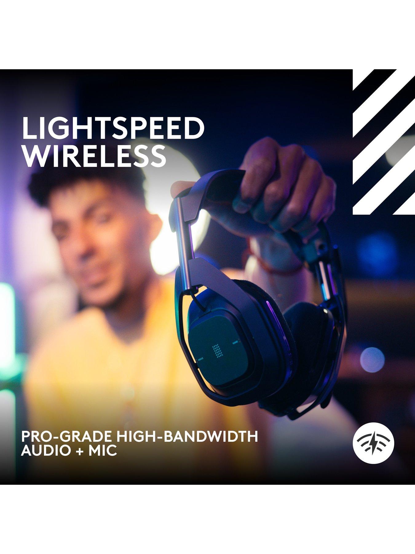 Logitech Astro A50 LIGHTSPEED Wireless Gaming Headset + Base Station-BLACKConnect your three favourite gaming platforms (including Xbox Series X|S, PS5, PC, Nintendo Switch, and more) via USB-C audio and tap through them right from your headset with PLAYSYNC AUDIO. PRO-G GRAPHENE audio drivers bring breakthrough clarity and detail, and 24 bit LIGHTSPEED delivers unrivaled wireless audio performance. With a 24 hour battery life and magnetic charging base station, A50 Gen 5 is made to play.