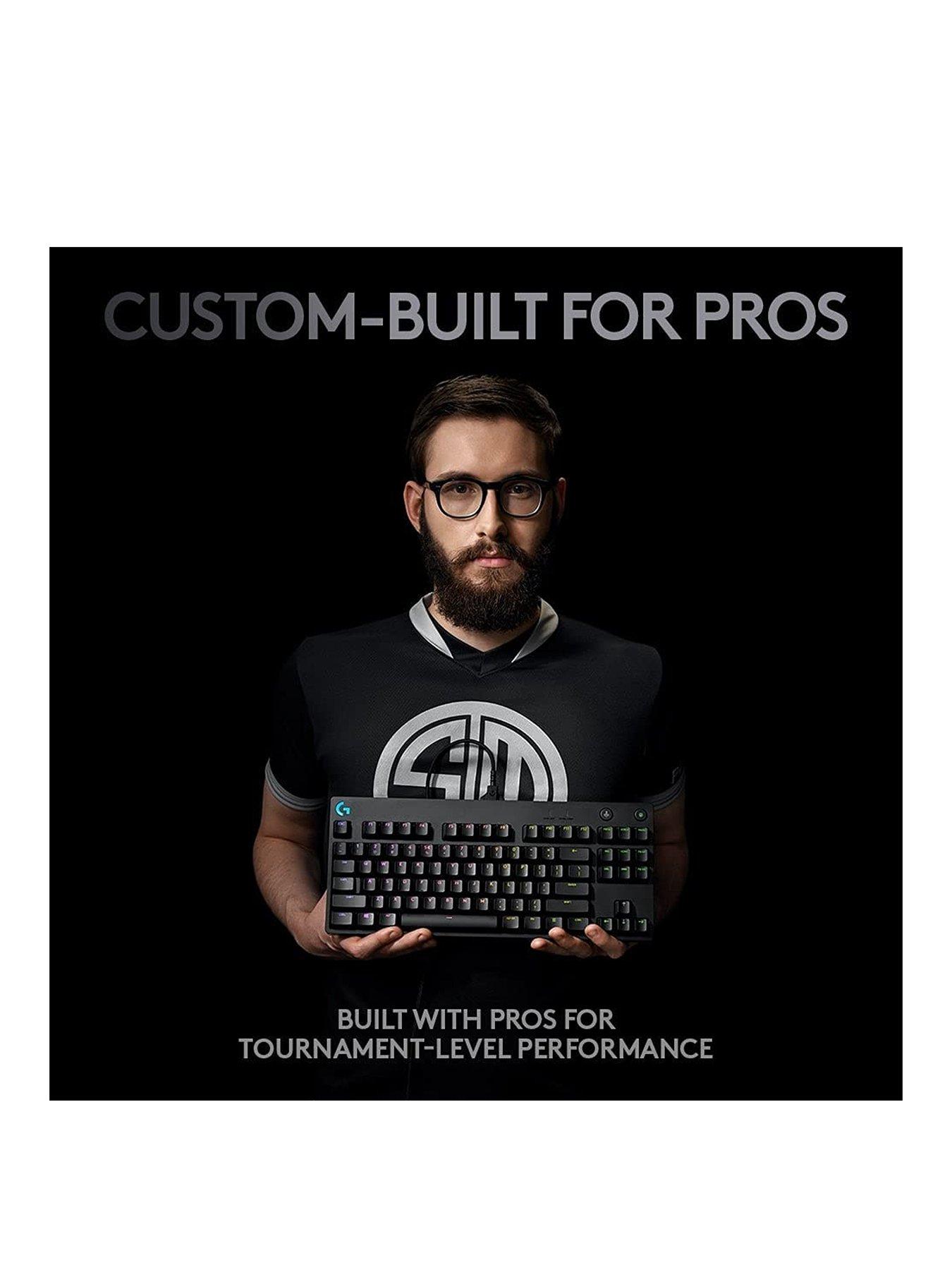 LogitechG G PRO Mechanical Gaming Keyboard - BLACKBuilt with and for esports athletes for competition-level performance, speed and precision, the Logitech G PRO Mechanical Gaming Keyboard comes in a compact tenkeyless design that frees up table space for low-sens mousing. Pro-grade Clicky switches deliver an audible click and a tactile feedback bump for a solid, secure keypress. Programmable LIGHTSYNC RGB and onboard memory let you customise and store a lighting pattern for tournaments.* Includes a three-step angle adjustment for additional levels of comfort, plus rubber feet for excellent stability during intense gaming. A detachable cable makes for easy transportation. Play to win.*Programming RGB lighting requires Logitech G HUB Software.